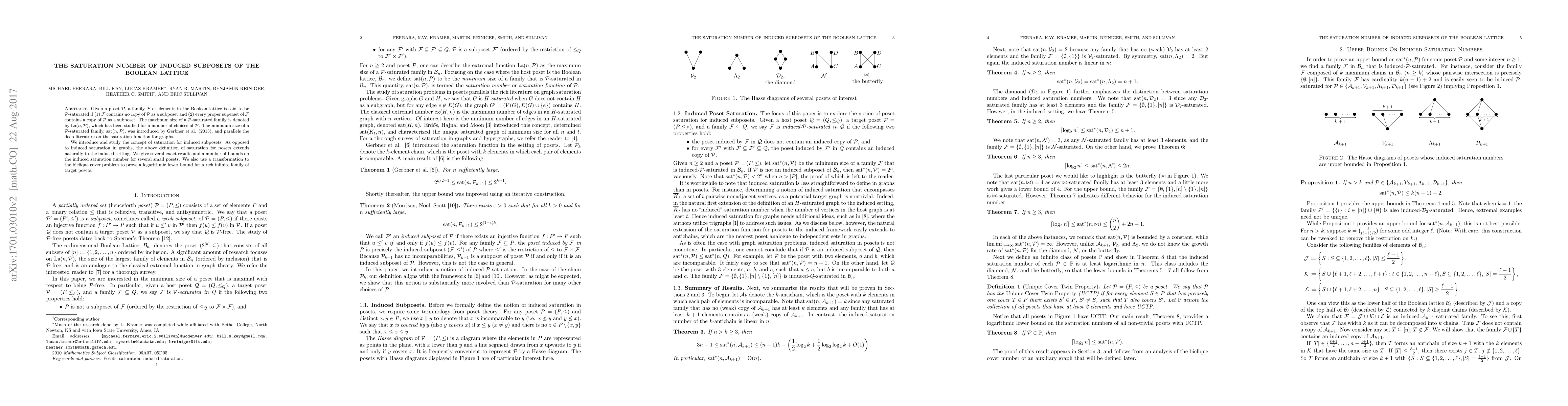 This paper investigates the saturation number for induced subposets of the Boolean lattice, defining a $P$-saturated family and introducing the minimum size of such a family, $sat(n,P)$. The authors provide exact results and bounds for several small posets and demonstrate a logarithmic lower bound for an infinite family of target posets via a biclique cover problem transformation.
