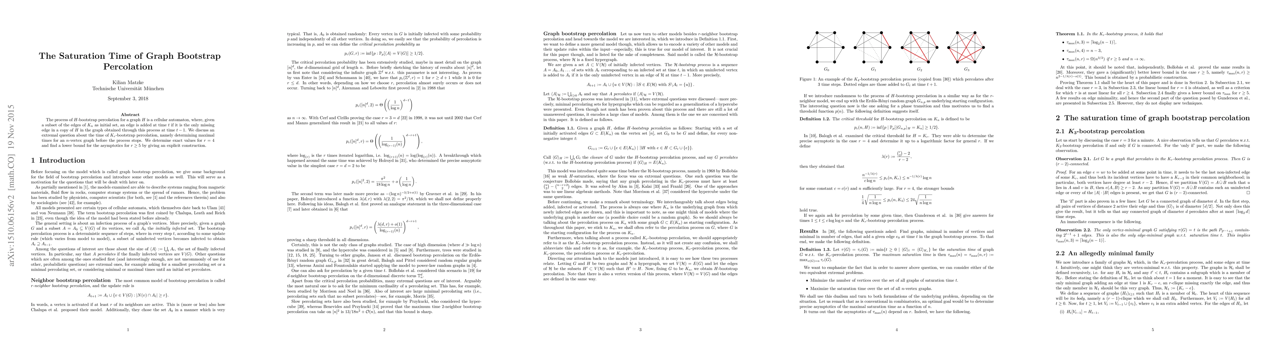 This paper explores the saturation time in $H$-bootstrap percolation for graphs, focusing on determining the maximum time required for $K_r$-bootstrap percolation to halt. It provides exact values for $r=4$ and establishes a lower bound for $r \geq 5$ through an explicit construction.
