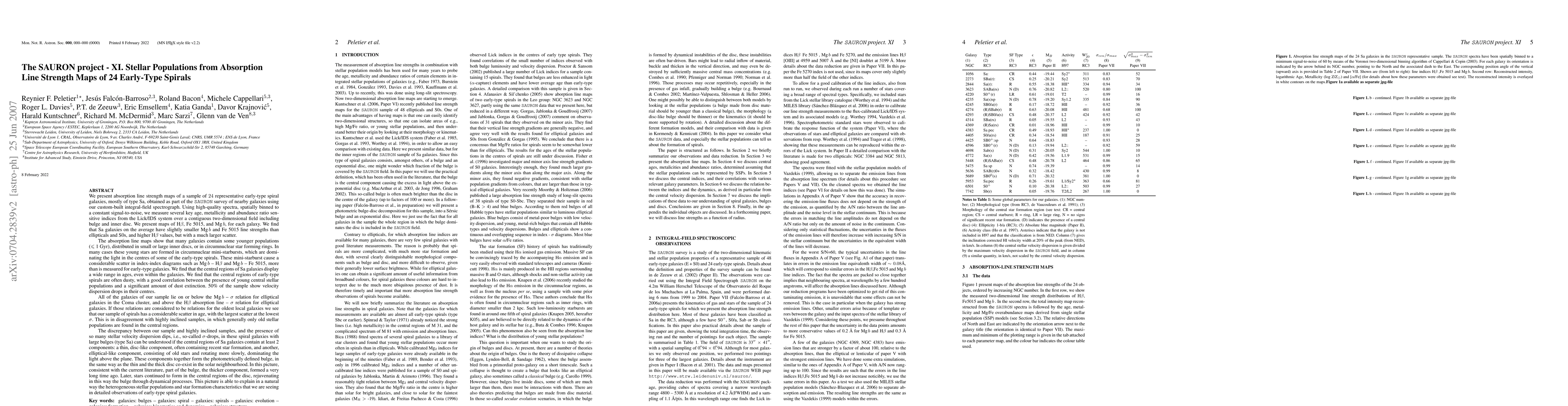 This study uses spectroscopy to map the age, metallicity, and abundance of stars in 24 early-type spiral galaxies, revealing a significant scatter in ages within these galaxies and some containing younger populations, contradicting previous assumptions about the age structure of elliptical galaxies.