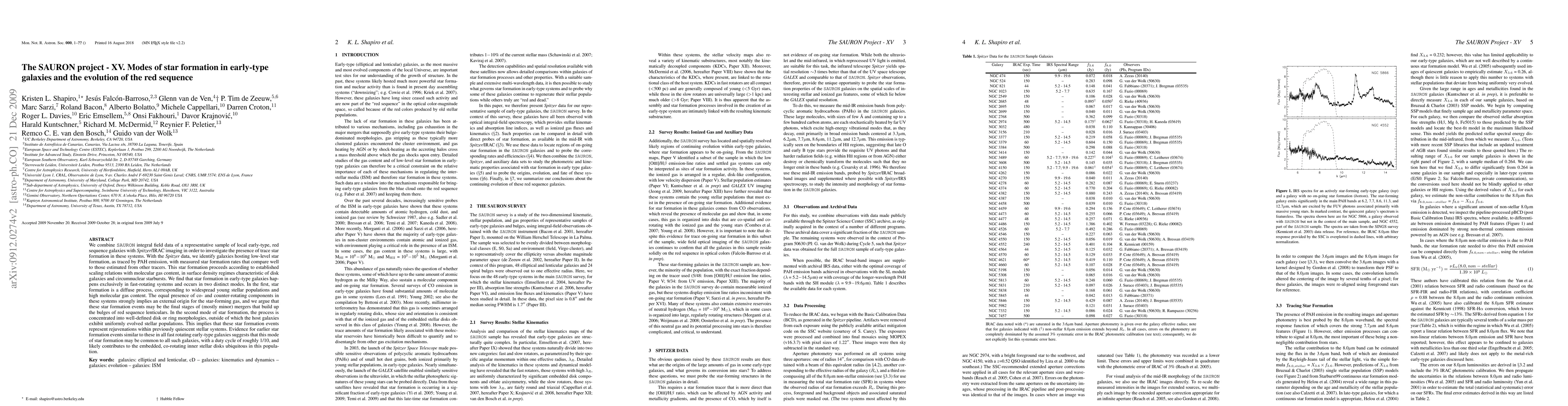 The SAURON project reveals that star formation in early-type galaxies occurs in two distinct modes: diffuse star formation linked to widespread young stellar populations and high gas content, likely from minor mergers, and concentrated star formation in disk or ring morphologies indicating rejuvenations in previously quiescent systems. Both modes are exclusive to fast-rotating galaxies.