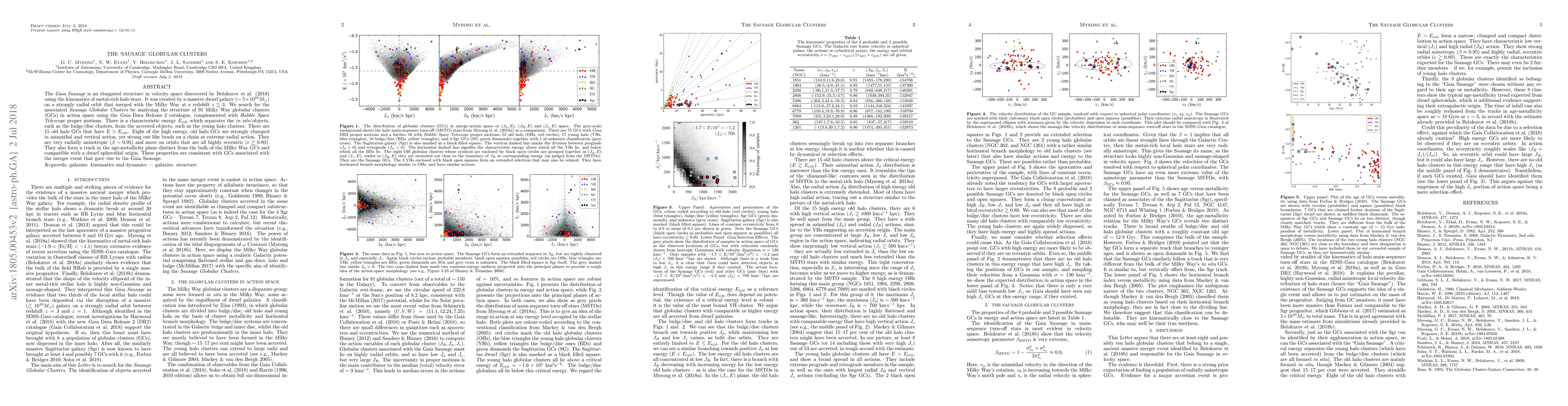The Gaia Sausage, a massive merger remnant in the Milky Way's halo, is linked to a group of 8 old, high-energy globular clusters characterized by extreme radial anisotropy and highly eccentric orbits, suggesting they originated from a dwarf galaxy merger. These clusters also show a distinct age-metallicity pattern, supporting their association with the Gaia Sausage.