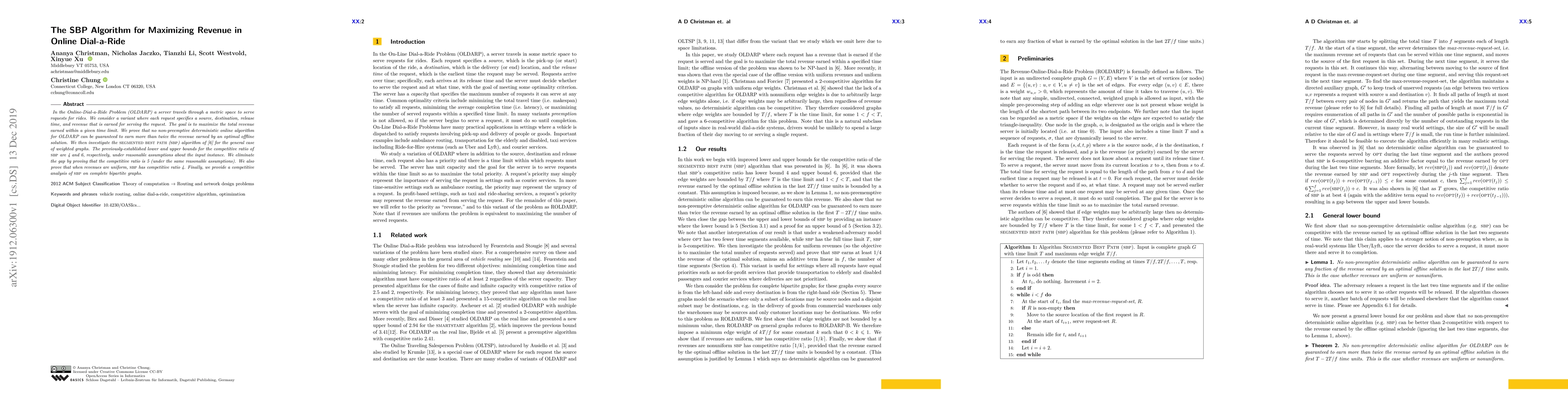 In the Online-Dial-a-Ride Problem (OLDARP) a server travels through a metric space to serve requests for rides. We consider a variant where each request specifies a source, destination, release time, and revenue that is earned for serving the request. The goal is to maximize the total revenue earned within a given time limit. We prove that no non-preemptive deterministic online algorithm for OLDARP can be guaranteed to earn more than twice the revenue earned by an optimal offline solution. We then investigate the \textsc{segmented best path} ($SBP$) algorithm of~\cite{atmos17} for the general case of weighted graphs. The previously-established lower and upper bounds for the competitive ratio of $SBP$ are 4 and 6, respectively, under reasonable assumptions about the input instance. We eliminate the gap by proving that the competitive ratio is 5 (under the same reasonable assumptions). We also prove that when revenues are uniform, $SBP$ has competitive ratio 4. Finally, we provide a competitive analysis of $SBP$ on complete bipartite graphs.