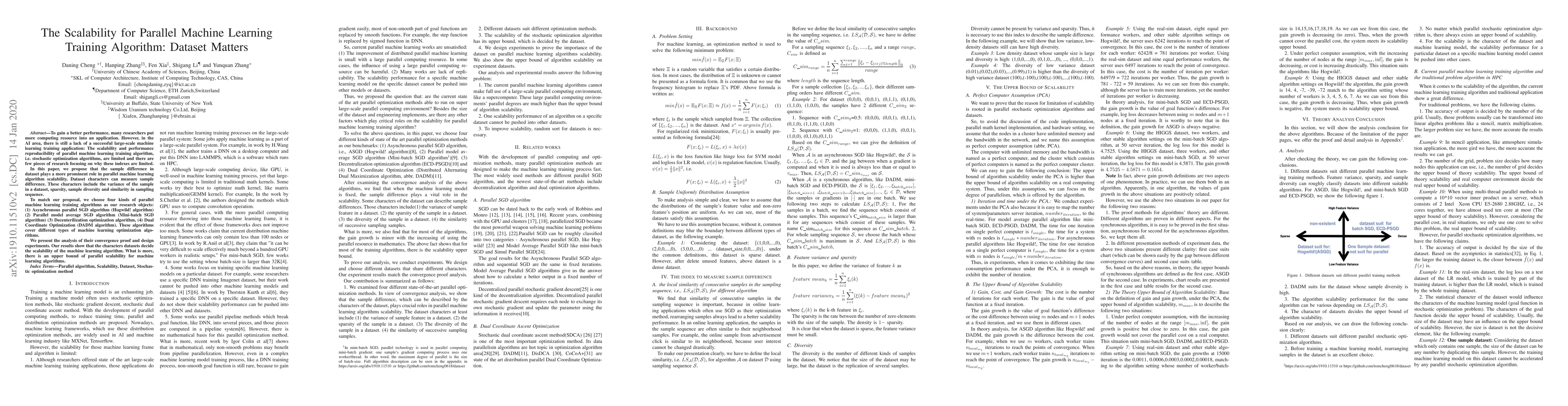 To gain a better performance, many researchers put more computing resource into an application. However, in the AI area, there is still a lack of a successful large-scale machine learning training application: The scalability and performance reproducibility of parallel machine learning training algorithm are limited and there are a few pieces of research focusing on why these indexes are limited but there are very few research efforts explaining the reasons in essence. In this paper, we propose that the sample difference in dataset plays a more prominent role in parallel machine learning algorithm scalability. Dataset characters can measure sample difference. These characters include the variance of the sample in a dataset, sparsity, sample diversity and similarity in sampling sequence. To match our proposal, we choose four kinds of parallel machine learning training algorithms as our research objects: (1) Asynchronous parallel SGD algorithm (Hogwild! algorithm) (2) Parallel model average SGD algorithm (Mini-batch SGD algorithm) (3) Decenterilization optimization algorithm, (4) Dual Coordinate Optimization (DADM algorithm). These algorithms cover different types of machine learning optimization algorithms. We present the analysis of their convergence proof and design experiments. Our results show that the characters datasets decide the scalability of the machine learning algorithm. What is more, there is an upper bound of parallel scalability for machine learning algorithms.