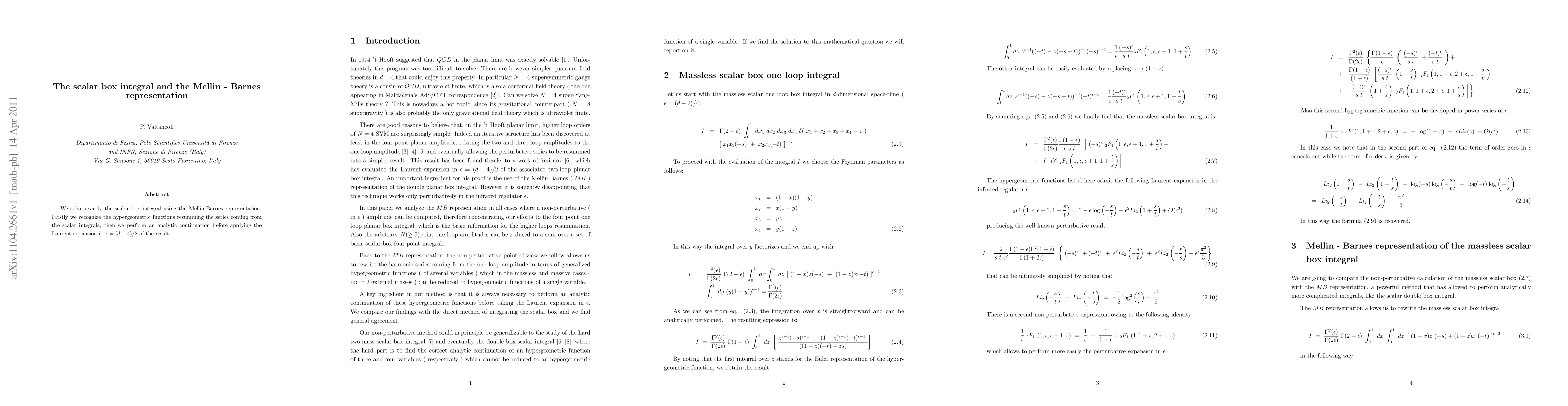 Researchers solve the scalar box integral exactly using the Mellin-Barnes representation, leveraging hypergeometric functions for a precise analytical solution.