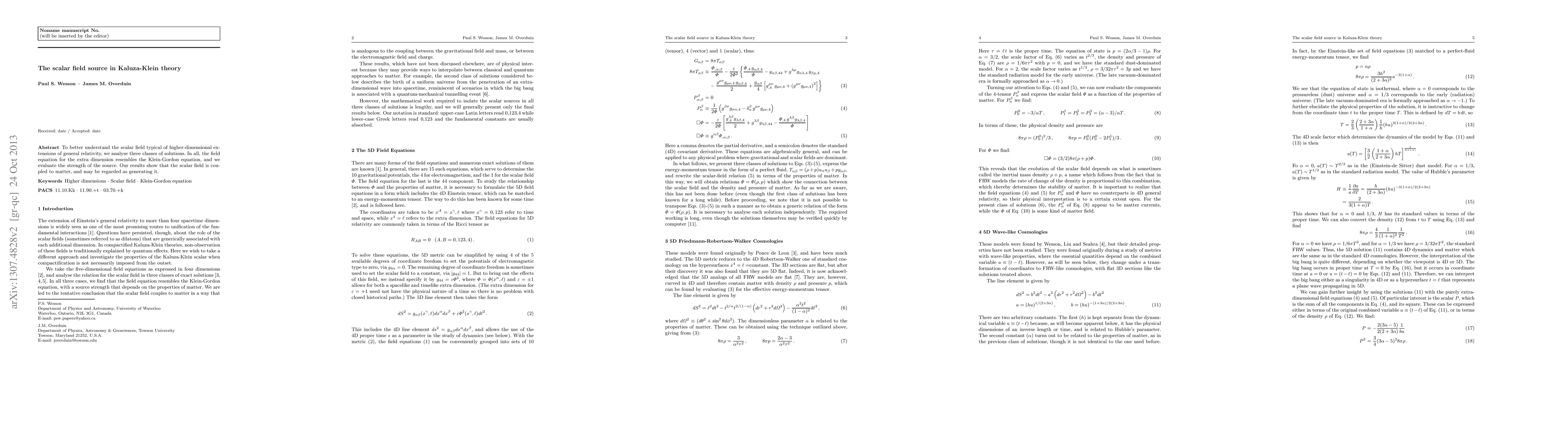 To better understand the scalar field typical of higher-dimensional extensions of general relativity, we analyse three classes of solutions. In all, the field equation for the extra dimension resembles the Klein-Gordon equation, and we evaluate the strength of the source. Our results show that the scalar field is coupled to matter, and may be regarded as generating it.
