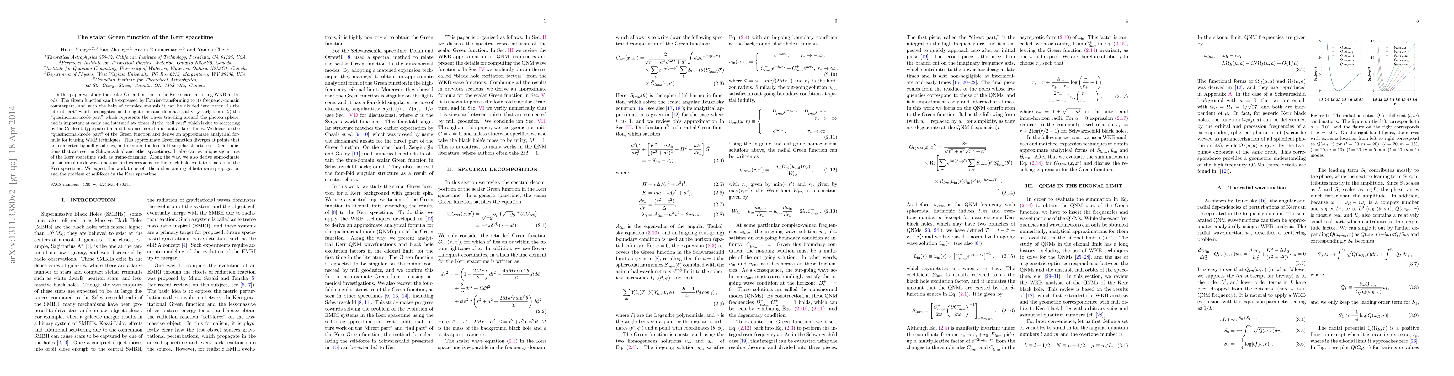 This paper investigates the scalar Green function in the Kerr spacetime using WKB methods, focusing on the quasinormal-mode part. It derives an approximate analytical formula that captures unique Kerr spacetime signatures, including frame-dragging, and provides insights into wave propagation and self-force problems.