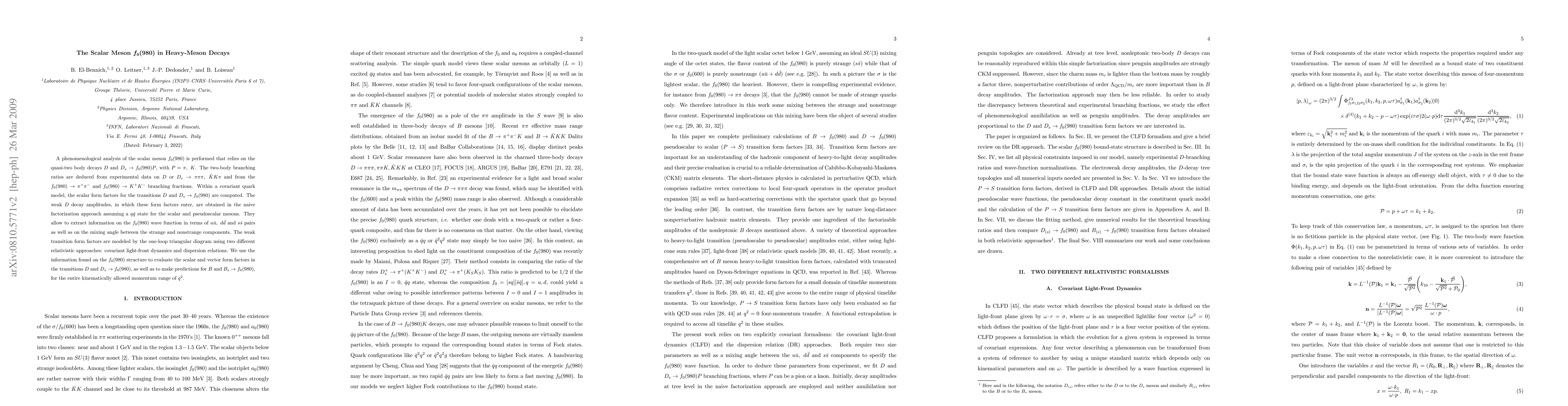 This paper analyzes the scalar meson f0(980) through its decay patterns and transitions in heavy-meson decays, employing a covariant quark model and factorization approach to extract information on its wave function and mixing angle. Predictions for B and Bs decays are also provided.