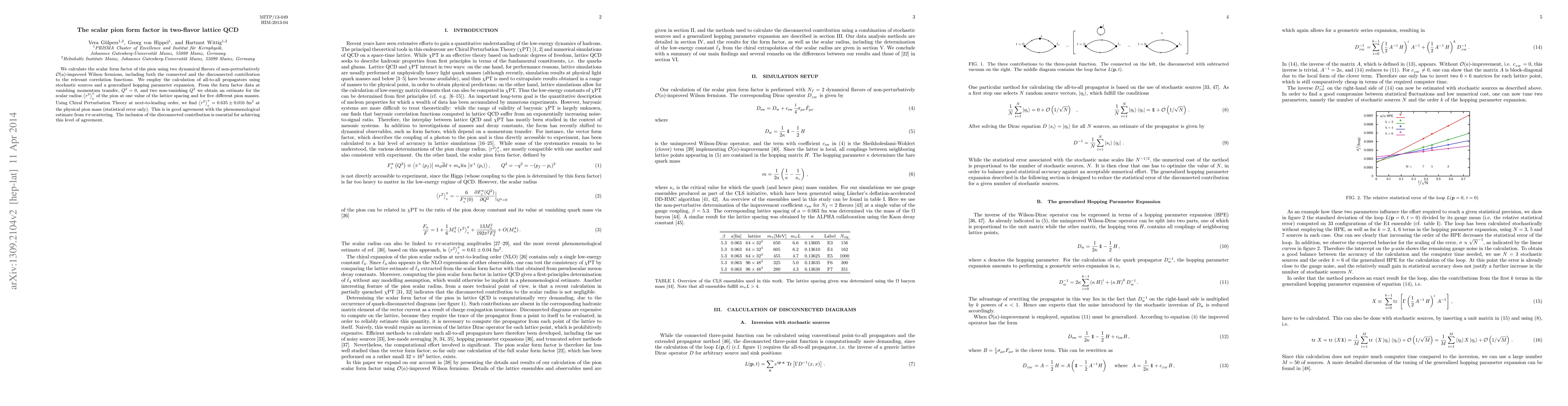 We calculate the scalar form factor of the pion using two dynamical flavors