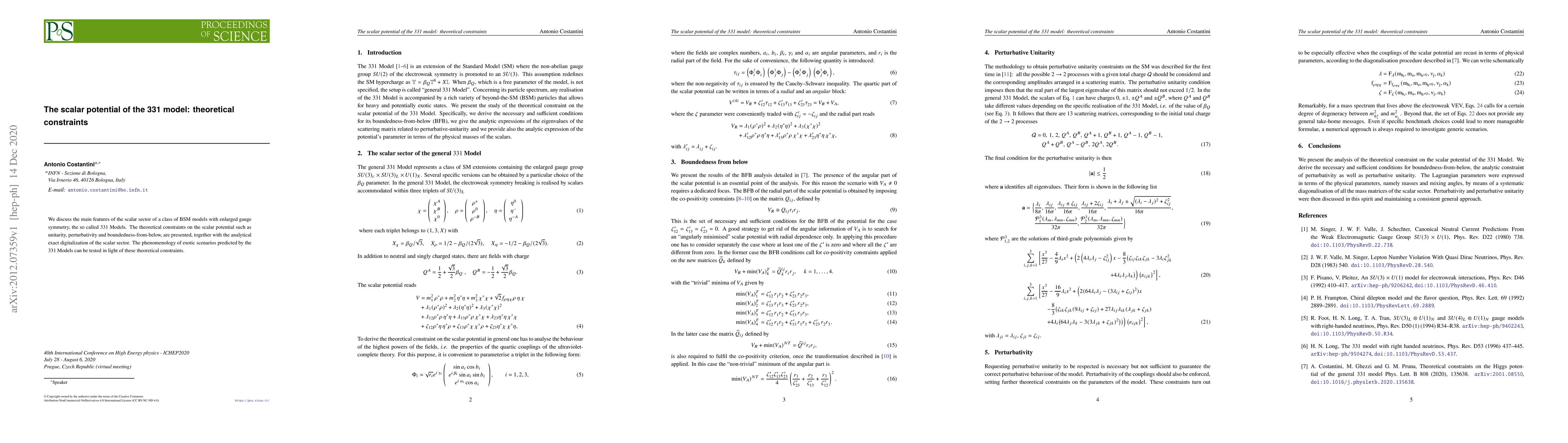 The 331 model's scalar potential is constrained by unitarity, perturbativity, and boundedness-from-below to predict exotic scenarios that can be tested experimentally.