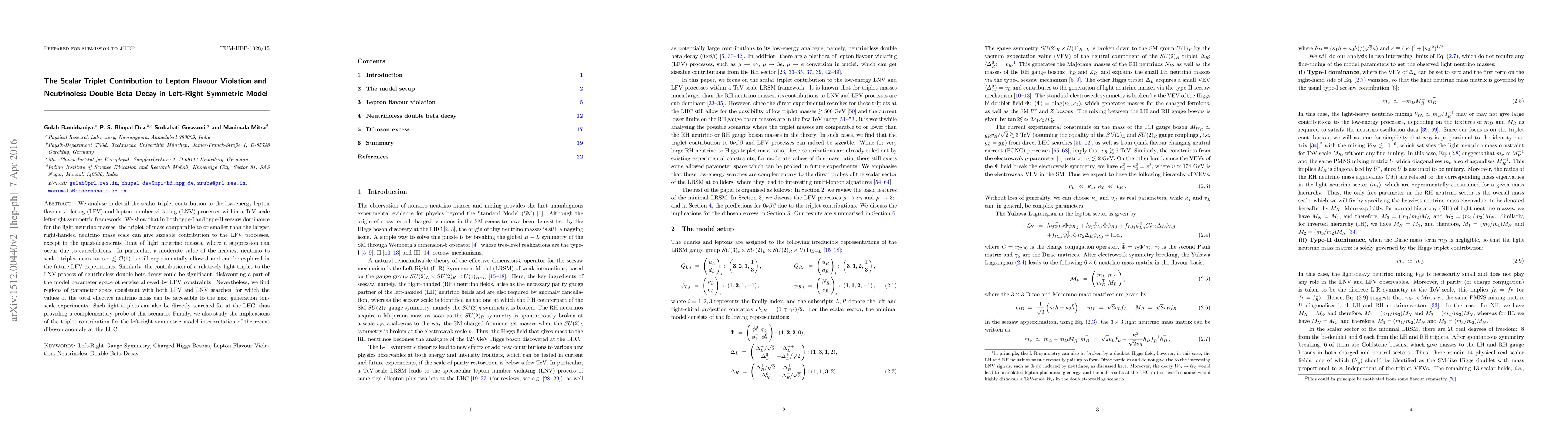 This paper investigates the impact of scalar triplets in a left-right symmetric model on lepton flavour violation and neutrinoless double beta decay, finding significant contributions from triplets comparable to the largest right-handed neutrino mass. It also explores the implications of these contributions for future experiments and the LHC.