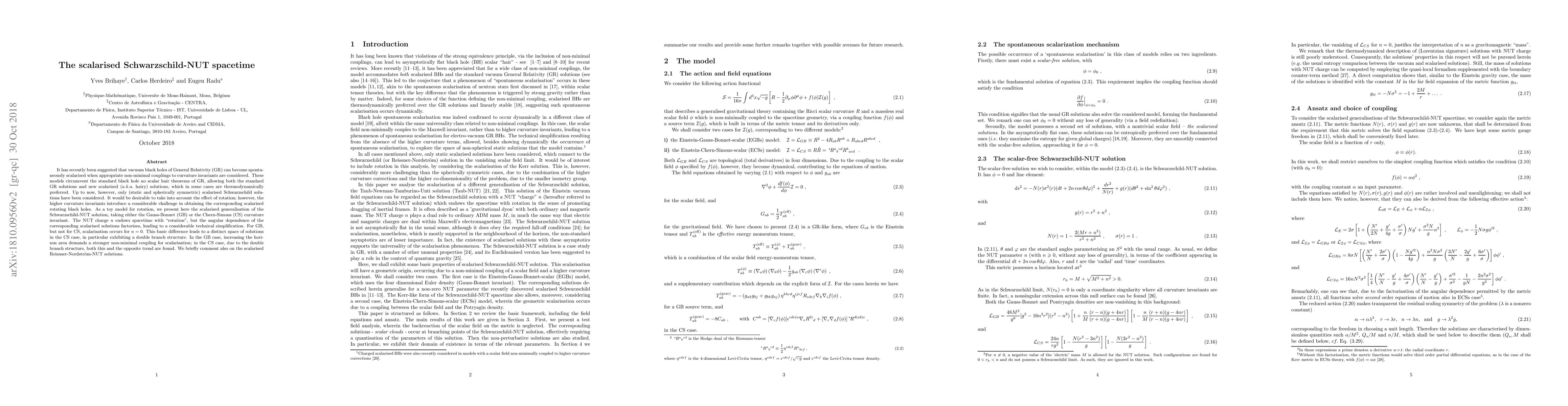 It has recently been suggested that vacuum black holes of General Relativity (GR) can become spontaneously scalarised when appropriate non-minimal couplings to curvature invariants are considered. These models circumvent the standard black hole no scalar hair theorems of GR, allowing both the standard GR solutions and new scalarised ($a.k.a.$ hairy) solutions, which in some cases are thermodynamically preferred. Up to now, however, only (static and spherically symmetric) scalarised Schwarzschild solutions have been considered. It would be desirable to take into account the effect of rotation; however, the higher curvature invariants introduce a considerable challenge in obtaining the corresponding scalarised rotating black holes. As a toy model for rotation, we present here the scalarised generalisation of the Schwarzschild-NUT solution, taking either the Gauss-Bonnet (GB) or the Chern-Simons (CS) curvature invariant. The NUT charge $n$ endows spacetime with "rotation", but the angular dependence of the corresponding scalarised solutions factorises, leading to a considerable technical simplification. For GB, but not for CS, scalarisation occurs for $n=0$. This basic difference leads to a distinct space of solutions in the CS case, in particular exhibiting a double branch structure. In the GB case, increasing the horizon area demands a stronger non-minimal coupling for scalarisation; in the CS case, due to the double branch structure, both this and the opposite trend are found. We briefly comment also on the scalarised Reissner-Nordstr\"om-NUT solutions.