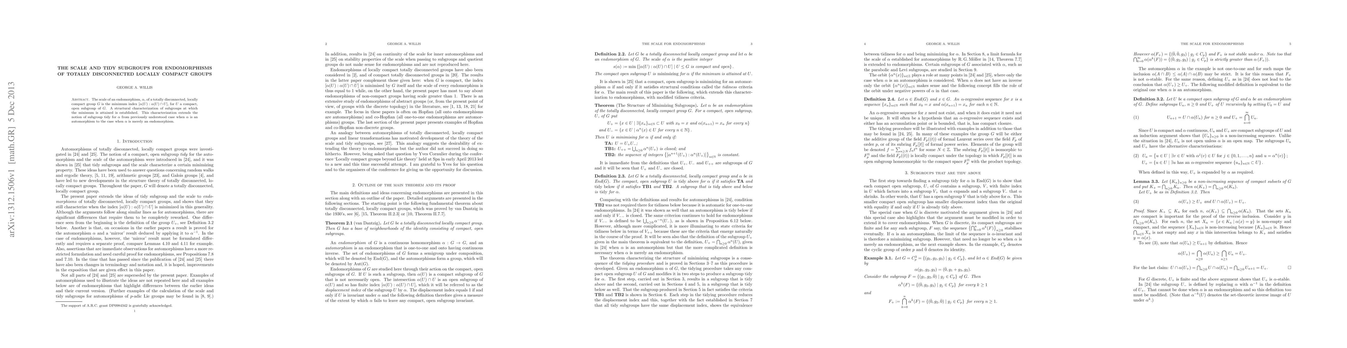 The scale of an endomorphism, $\alpha$, of a totally disconnected, locally compact group $G$ is the minimum index $[\alpha(U) : \alpha(U)\cap U]$, for $U$ a compact, open subgroup of $G$. A structural characterization of subgroups at which the minimum is attained is established. This characterization extends the notion of subgroup tidy for $\alpha$ from previously understood case when $\alpha$ is an automorphism to the case when $\alpha$ is merely an endomorphism.