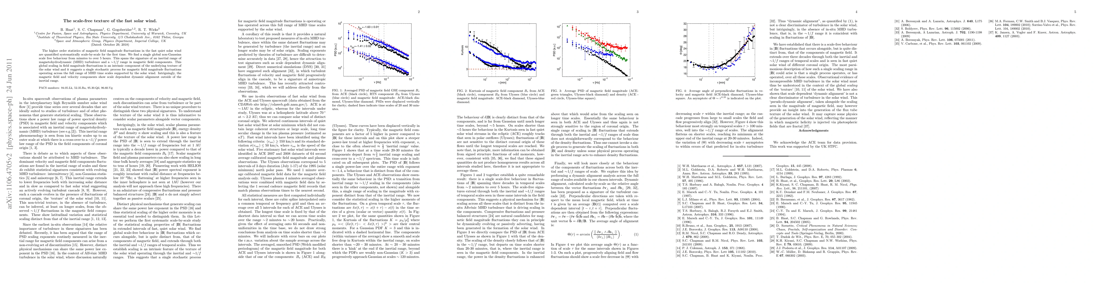 The higher order statistics of magnetic field magnitude fluctuations in the fast quiet solar wind are quantified systematically scale-by-scale for the first time. We find a single global non-Gaussian scale free behaviour from minutes to over 5 hours. This spans the signature of an inertial range of magnetohydrodynamic (MHD) turbulence and a ~1/f range in magnetic field components. This global scaling in field magnitude fluctuations is an intrinsic component of the underlying texture of the solar wind and it suggests a single stochastic process for magnetic field magnitude fluctuations operating across the full range of MHD time scales supported by the solar wind. Intriguingly, the magnetic field and velocity components show scale dependent dynamic alignment outside of the inertial range.