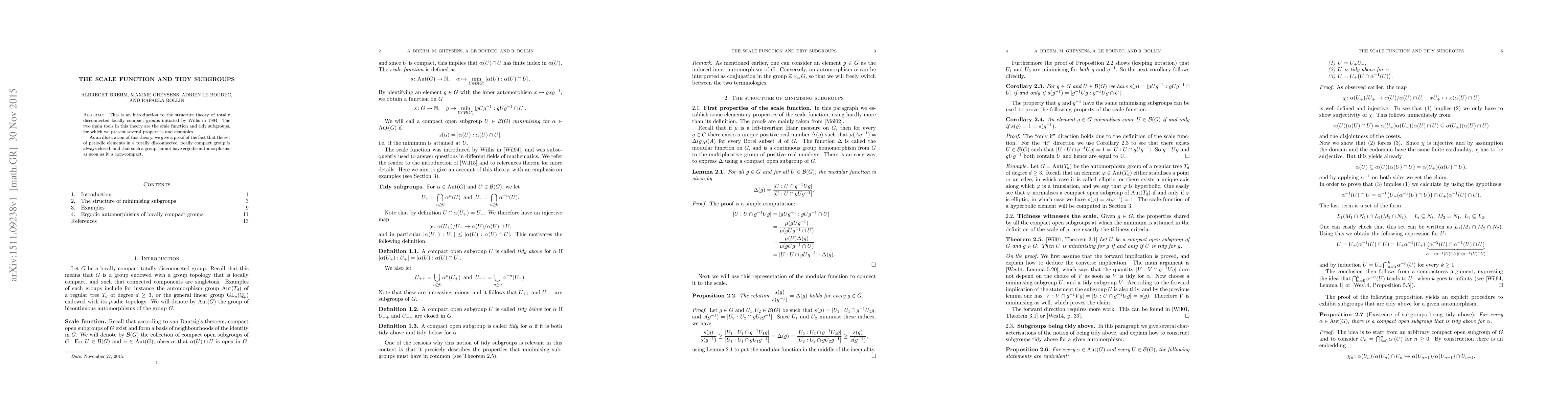 This paper introduces the structure theory of totally disconnected locally compact groups, focusing on the scale function and tidy subgroups as key tools. It proves that periodic elements form a closed set in such groups and that non-compact groups cannot have ergodic automorphisms.