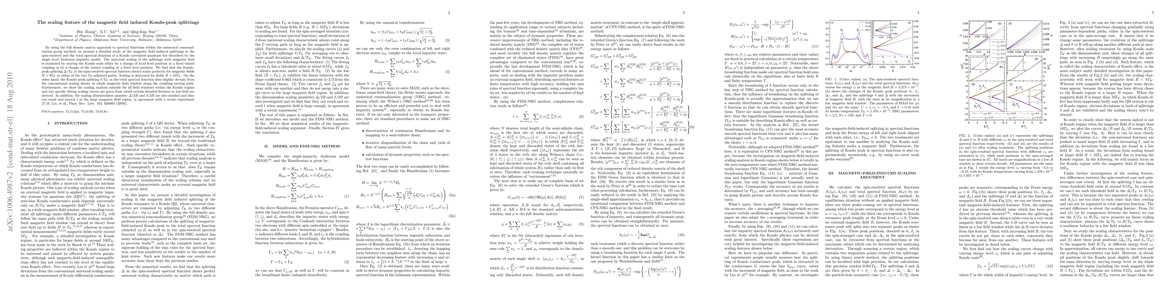 By using the full density matrix approach to spectral functions within the numerical renormalization group method, we present a detailed study of the magnetic field induced splittings in the spin-resolved and the total spectral densities of a Kondo correlated quantum dot described by the single level Anderson impurity model. The universal scaling of the splittings with magnetic field is examined by varying the Kondo scale either by a change of local level position at a fixed tunnel coupling or by a change of the tunnel coupling at a fixed level position. We find that the Kondo-peak splitting $\Delta/T_K$ in the spin-resolved spectral function always scales perfectly for magnetic fields $B<8T_K$ in either of the two $T_K$-adjusted paths. Scaling is destroyed for fields $B>10T_K$. On the other hand, the Kondo peak splitting $\delta/T_K$ in the total spectral function does slightly deviate from the conventional scaling theory in whole magnetic field window along the coupling-varying path. Furthermore, we show the scaling analysis suitable for all field windows within the Kondo regime and two specific fitting scaling curves are given from which certain detailed features at low field are derived. In addition, the scaling dimensionless quantity $\Delta/2B$ and $\delta/2B$ are also studied and they can reach and exceed 1 in the large magnetic field region, in agreement with a recent experiment [T.M. Liu, et al., Phys. Rev. Lett. 103, 026803 (2009)].