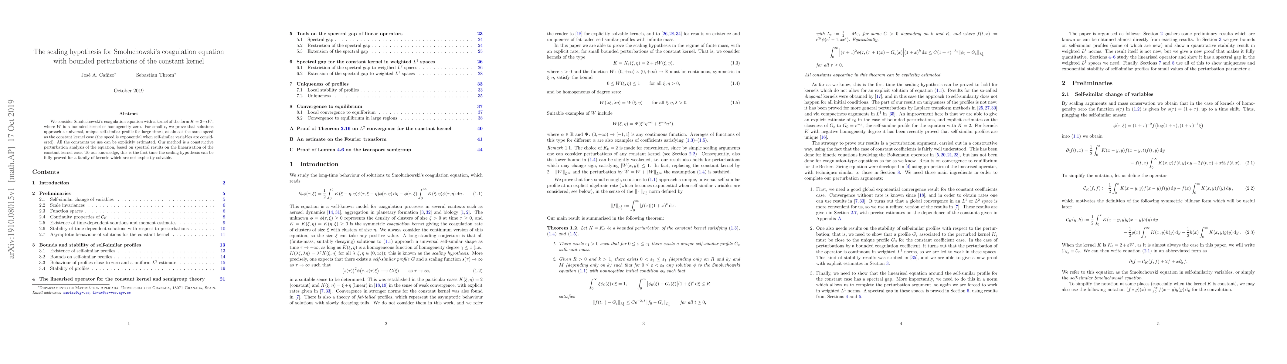 We consider Smoluchowski's coagulation equation with a kernel of the form $K = 2 + \epsilon W$, where $W$ is a bounded kernel of homogeneity zero. For small $\epsilon$, we prove that solutions approach a universal, unique self-similar profile for large times, at almost the same speed as the constant kernel case (the speed is exponential when self-similar variables are considered). All the constants we use can be explicitly estimated. Our method is a constructive perturbation analysis of the equation, based on spectral results on the linearisation of the constant kernel case. To our knowledge, this is the first time the scaling hypothesis can be fully proved for a family of kernels which are not explicitly solvable.