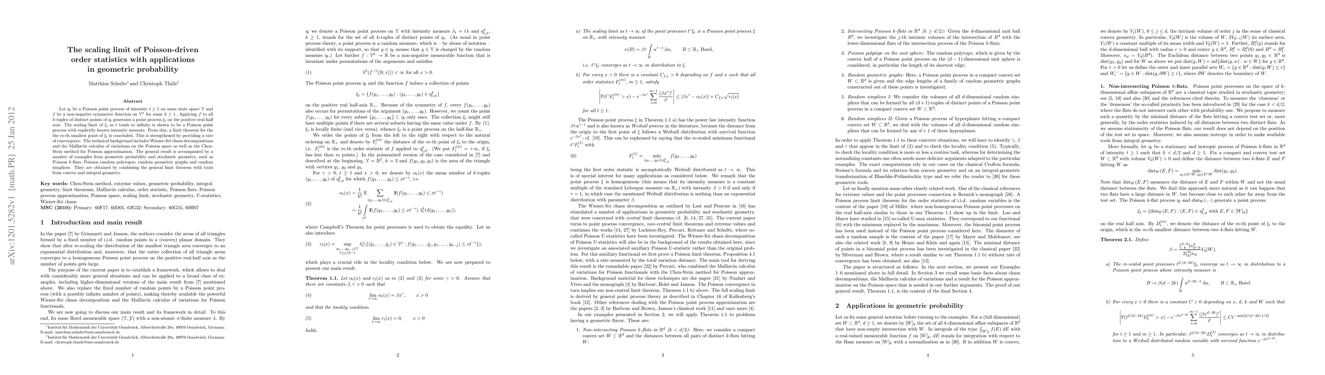 Let $\eta_t$ be a Poisson point process of intensity $t\geq 1$ on some state space $\Y$ and $f$ be a non-negative symmetric function on $\Y^k$ for some $k\geq 1$. Applying $f$ to all $k$-tuples of distinct points of $\eta_t$ generates a point process $\xi_t$ on the positive real-half axis. The scaling limit of $\xi_t$ as $t$ tends to infinity is shown to be a Poisson point process with explicitly known intensity measure. From this, a limit theorem for the the $m$-th smallest point of $\xi_t$ is concluded. This is strengthened by providing a rate of convergence. The technical background includes Wiener-It\^o chaos decompositions and the Malliavin calculus of variations on the Poisson space as well as the Chen-Stein method for Poisson approximation. The general result is accompanied by a number of examples from geometric probability and stochastic geometry, such as Poisson $k$-flats, Poisson random polytopes, random geometric graphs and random simplices. They are obtained by combining the general limit theorem with tools from convex and integral geometry.