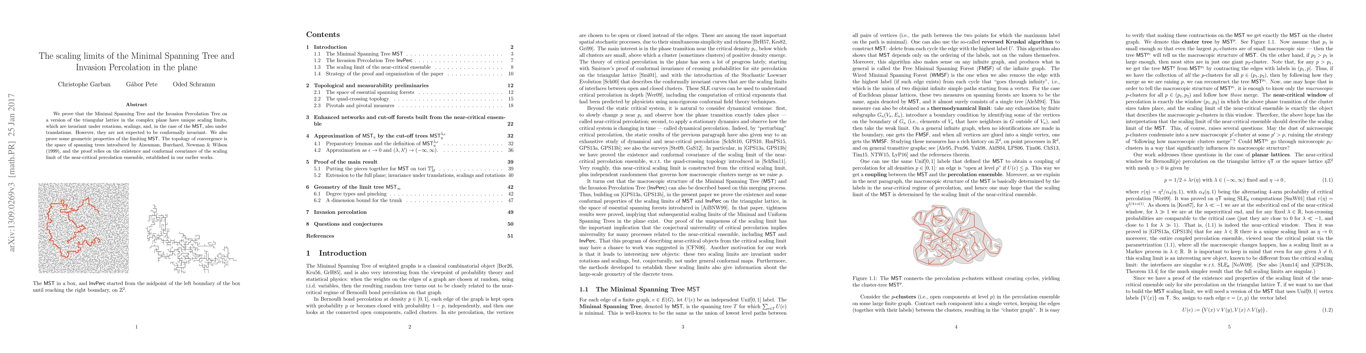 This paper demonstrates that the Minimal Spanning Tree and Invasion Percolation Tree on a triangular lattice in the complex plane converge to unique scaling limits invariant under rotations, scalings, and translations for MST. These limits are not expected to be conformally invariant, and the study also establishes geometric properties of the limiting MST.