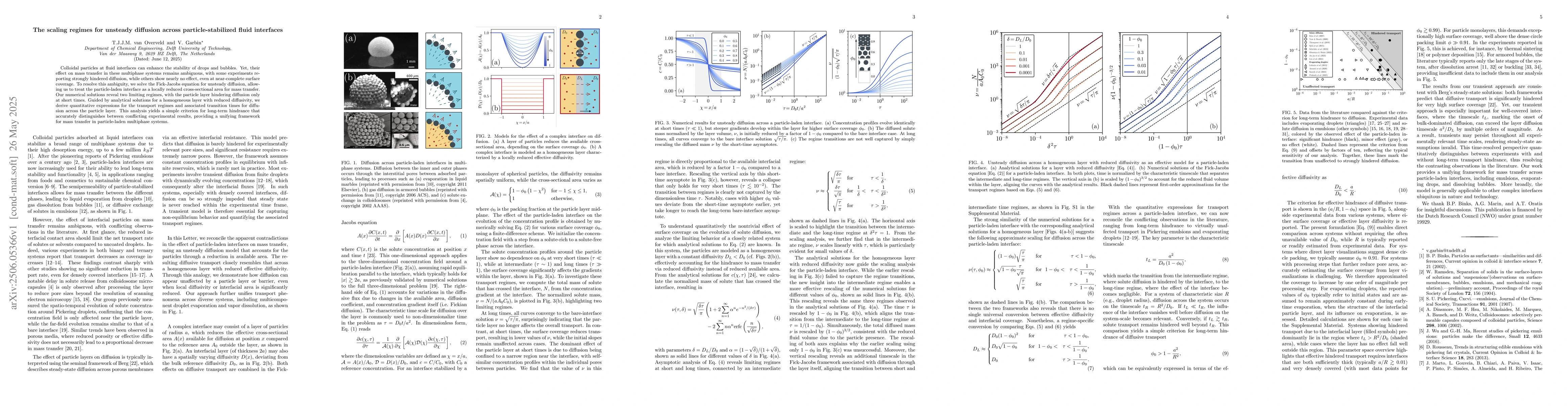 The research introduces a novel approach to classify and understand the scaling regimes for unsteady diffusion across particle-stabilized fluid interfaces, reconciling conflicting experimental observations and providing a clear criterion for long-term hindrance.
