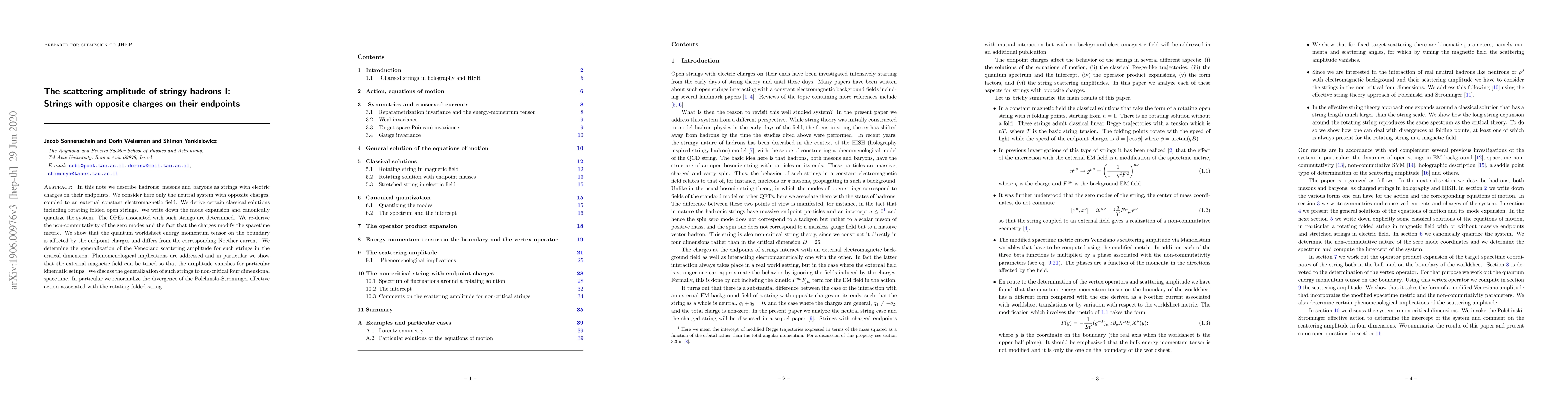 Researchers describe stringy hadrons with opposite charges on their endpoints, deriving classical solutions and quantum behavior, and finding that an external magnetic field can make the scattering amplitude vanish in certain cases.
