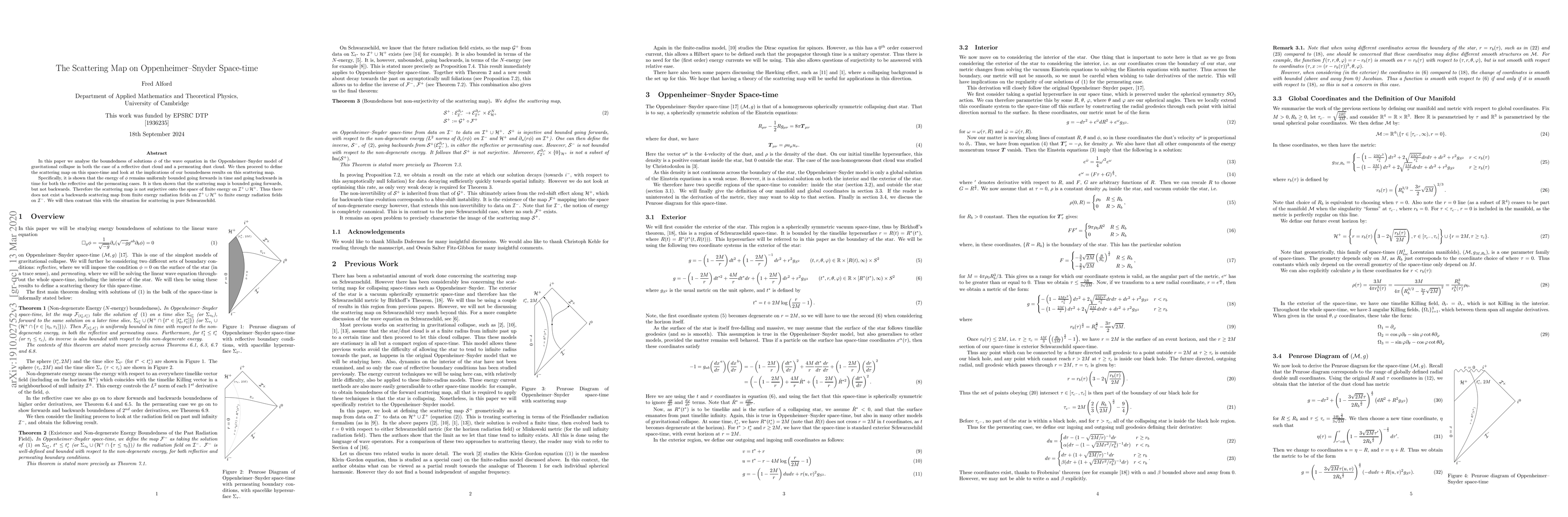 In this paper we analyse the boundedness of solutions $\phi$ of the wave equation in the Oppenheimer--Snyder model of gravitational collapse in both the case of a reflective dust cloud and a permeating dust cloud. We then proceed to define the scattering map on this space-time, and look at the implications of our boundedness results on this scattering map. Specifically, it is shown that the energy of $\phi$ remains uniformly bounded going forward in time and going backwards in time for both the reflective and the permeating cases, and it is then shown that the scattering map is bounded going forwards, but not backwards, and is therefore not surjective onto the space of finite energy on $\mathcal{I}^+\cup\mathcal{H}^+$. Thus there does not exist a backwards scattering map from finite energy radiation fields on $\mathcal{I}^+\cup\mathcal{H}^+$ to finite energy radiation fields on $\mathcal{I}^-$. We will then contrast this with the situation for scattering in pure Schwarzschild.