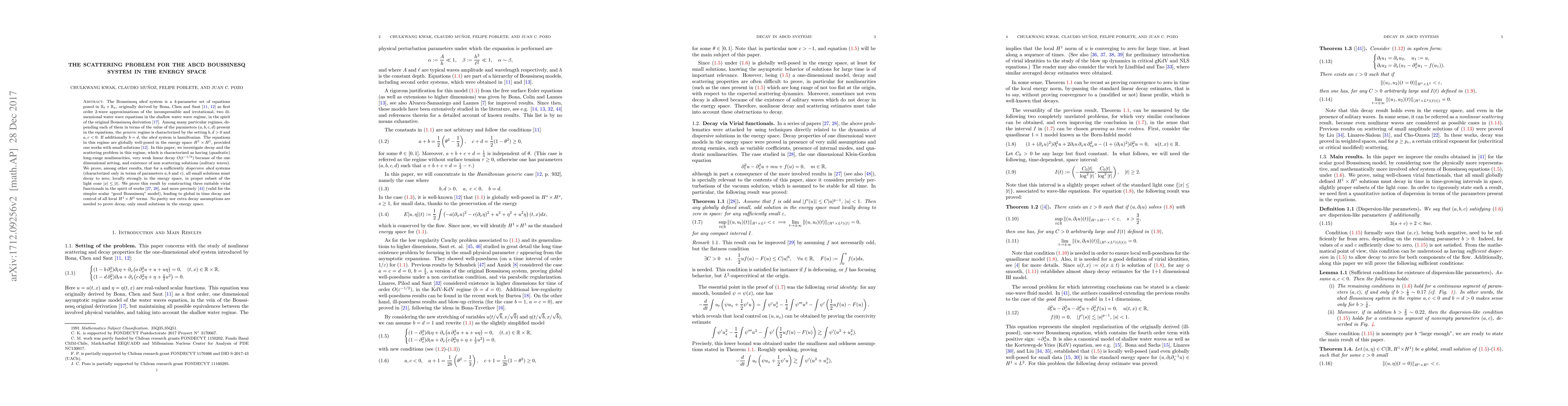 The Boussinesq $abcd$ system is a 4-parameter set of equations posed in $\mathbb{R}_t \times \mathbb{R}_x$, originally derived by Bona, Chen and Saut as first order 2-wave approximations of the incompressible and irrotational, two dimensional water wave equations in the shallow water wave regime, in the spirit of the original Boussinesq derivation. Among many particular regimes, depending each of them in terms of the value of the parameters $(a,b,c,d)$ present in the equations, the "generic" regime is characterized by the setting $b,d>0$ and $a,c<0$. The system is hamiltonian if also $b=d$. The equations in this regime are globally well-posed in the energy space $H^1\times H^1$, provided one works with small solutions. In this paper, we investigate decay and the scattering problem in this regime, which is characterized as having (quadratic) long-range nonlinearities, very weak linear decay $O(t^{-1/3})$ because of the one dimensional setting, and existence of non scattering solutions (solitary waves). We prove, among other results, that for a sufficiently dispersive $abcd$ systems (characterized only in terms of parameters $a, b$ and $c$), all small solutions must decay to zero, locally strongly in the energy space, in proper subset of the light cone $|x|\leq |t|$. We prove this result by constructing three suitable virial functionals in the spirit of works by Kowalczyk, Martel and the second author, and more recently by the last three authors (valid for the simpler scalar "good Boussinesq" model), leading to global in time decay and control of all local $H^1\times H^1$ terms. No parity nor extra decay assumptions are needed to prove decay, only small solutions in the energy space.