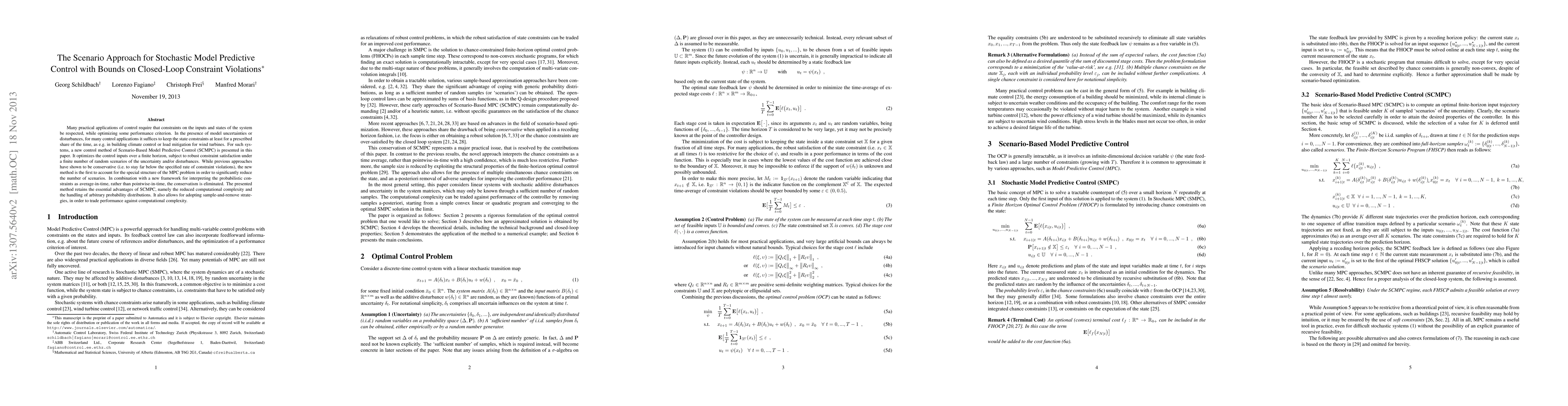 A new control method called Scenario-Based Model Predictive Control (SCMPC) is presented to optimize control inputs while respecting constraints in the presence of model uncertainties or disturbances. It reduces conservatism by accounting for the special structure of the MPC problem and allows for sample-and-remove strategies to trade performance against computational complexity.