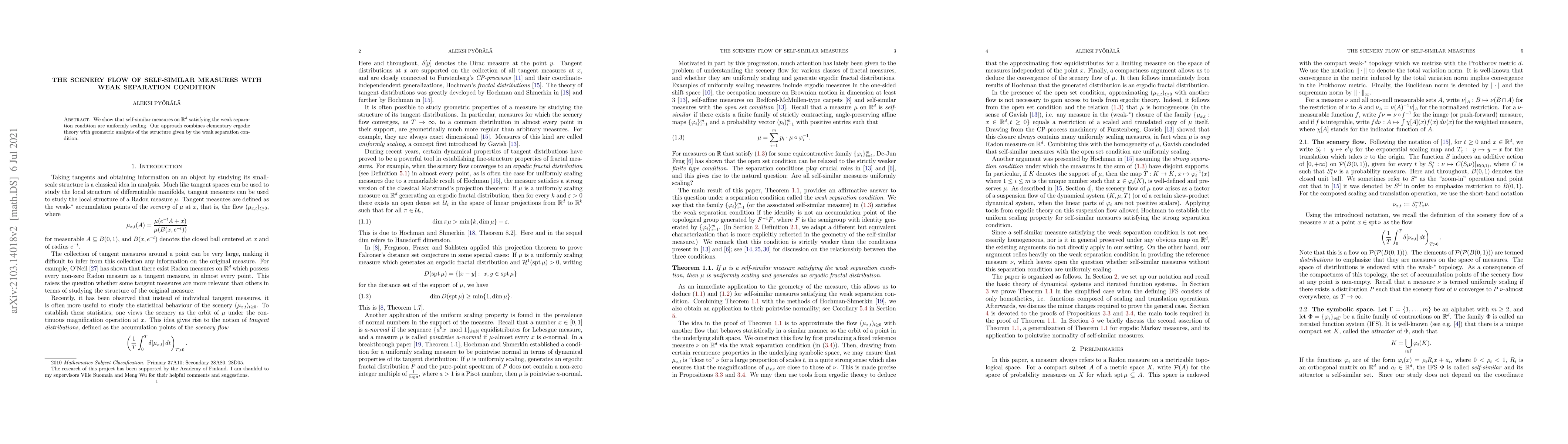 We show that self-similar measures on $\mathbb{R}^d$ satisfying the weak separation condition are uniformly scaling. Our approach combines elementary ergodic theory with geometric analysis of the structure given by the weak separation condition.