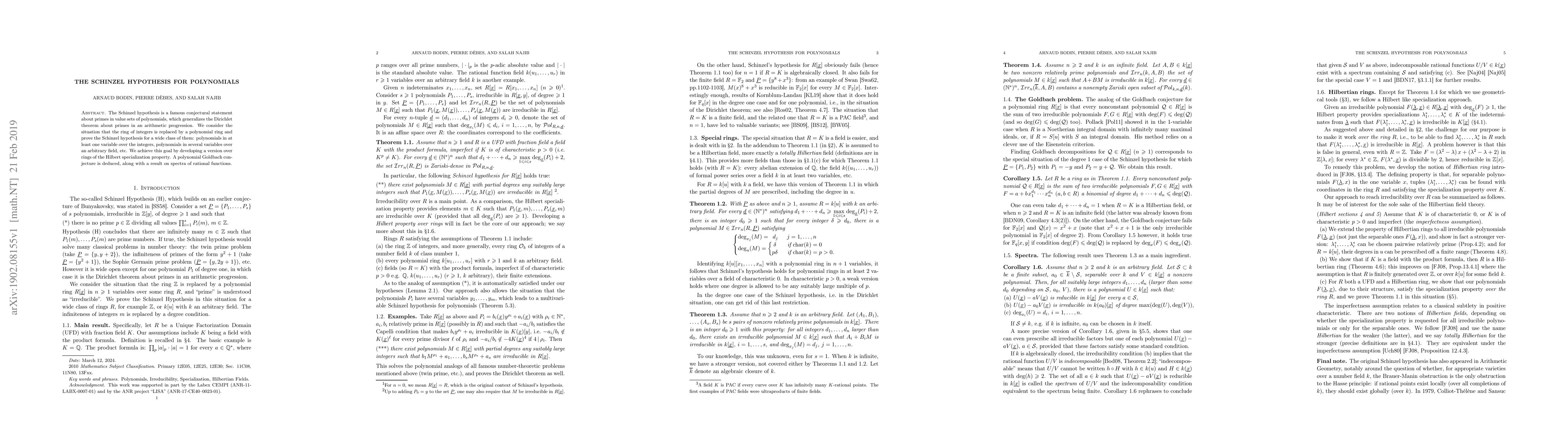 Researchers prove a generalized version of the Schinzel Hypothesis for polynomials in various rings, deducing a polynomial Goldbach conjecture and results on rational function spectra.