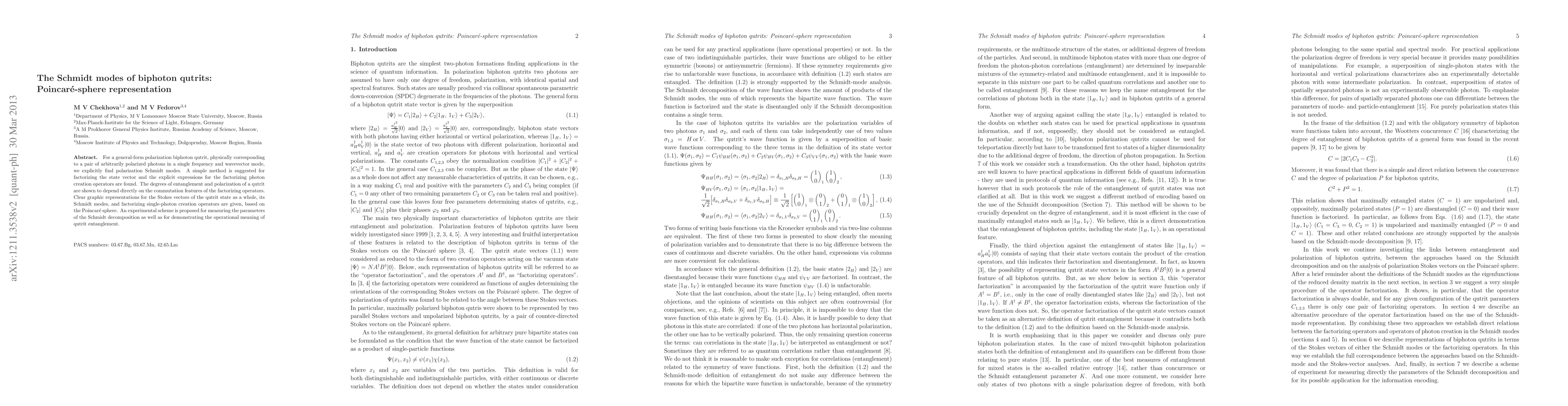 For a general-form polarization biphoton qutrit, physically corresponding to a pair of arbitrarily polarized photons in a single frequency and wavevector mode, we explicitly find polarization Schmidt modes. A simple method is suggested for factorizing the state vector and the explicit expressions for the factorizing photon creation operators are found. The degrees of entanglement and polarization of a qutrit are shown to depend directly on the commutation features of the factorizing operators. Clear graphic representations for the Stokes vectors of the qutrit state as a whole, its Schmidt modes, and factorizing single-photon creation operators are given, based on the Poincar\'e sphere. An experimental scheme is proposed for measuring the parameters of the Schmidt decomposition as well as for demonstrating the operational meaning of qutrit entanglement.