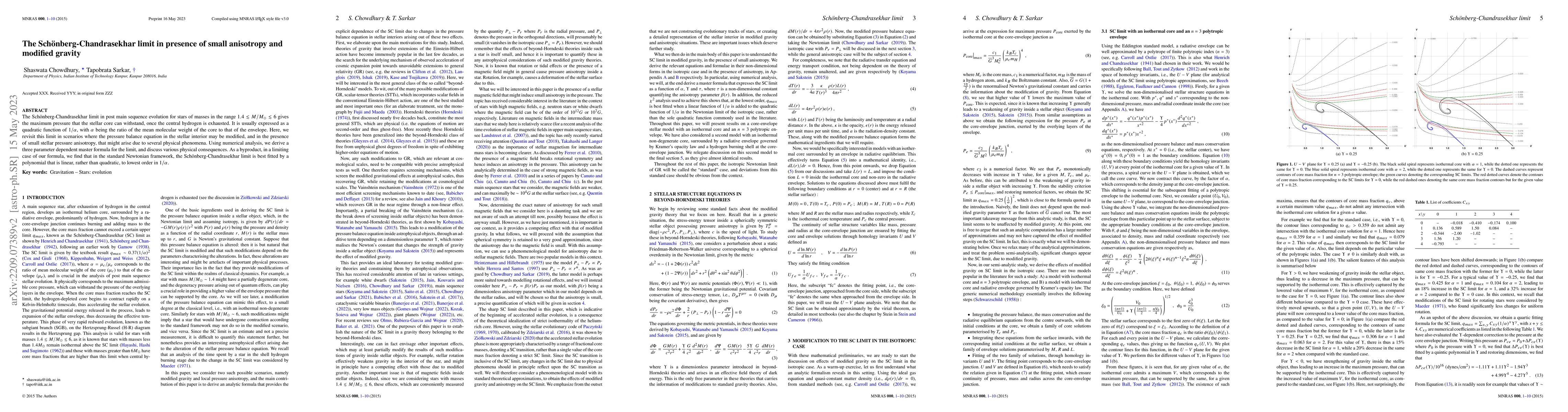This paper revisits the Sch{\"o}nberg-Chandrasekhar limit for post-main sequence stars, incorporating small anisotropy and modified gravity. It derives a three-parameter formula for the limit, revealing that in standard Newtonian physics, the limit is best described by a linear polynomial rather than the usual quadratic form.