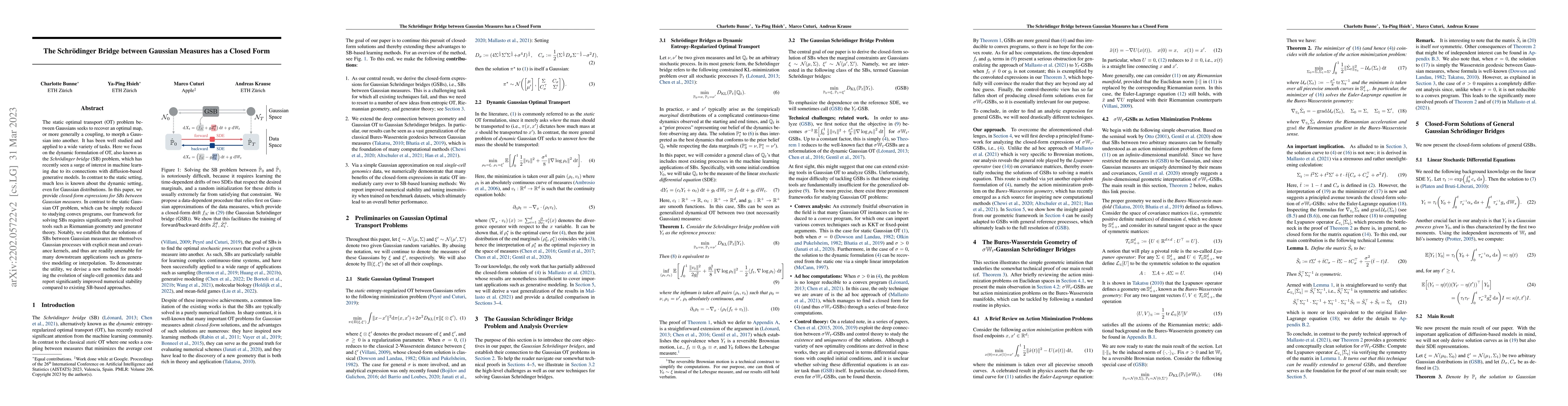 This paper presents closed-form solutions for the Schrödinger bridge problem between Gaussian measures, utilizing advanced tools like Riemannian geometry and generator theory. The solutions are Gaussian processes with explicit mean and covariance kernels, enhancing applications in generative modeling and data interpolation, as demonstrated by improved modeling of single-cell genomics data.