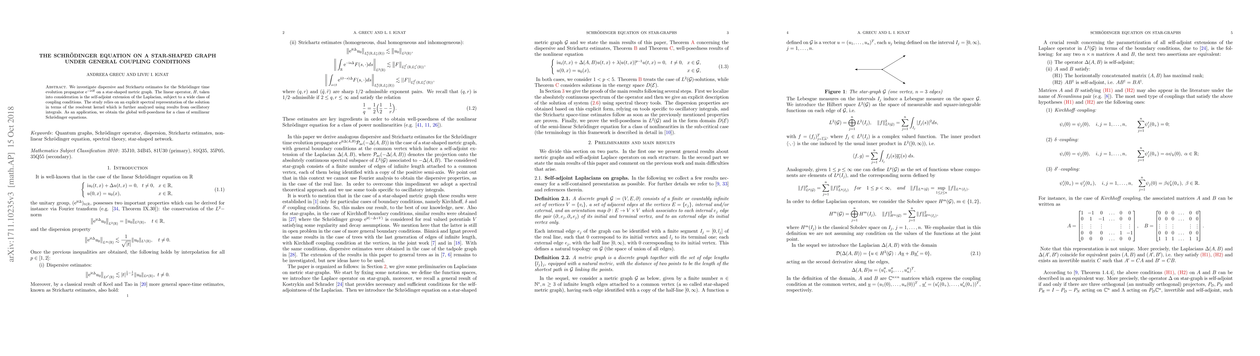 This paper explores dispersive and Strichartz estimates for the Schrödinger equation on a star-shaped metric graph, focusing on the self-adjoint Laplacian under various coupling conditions. The study employs an explicit spectral representation and results from oscillatory integrals to achieve global well-posedness for semilinear Schrödinger equations.