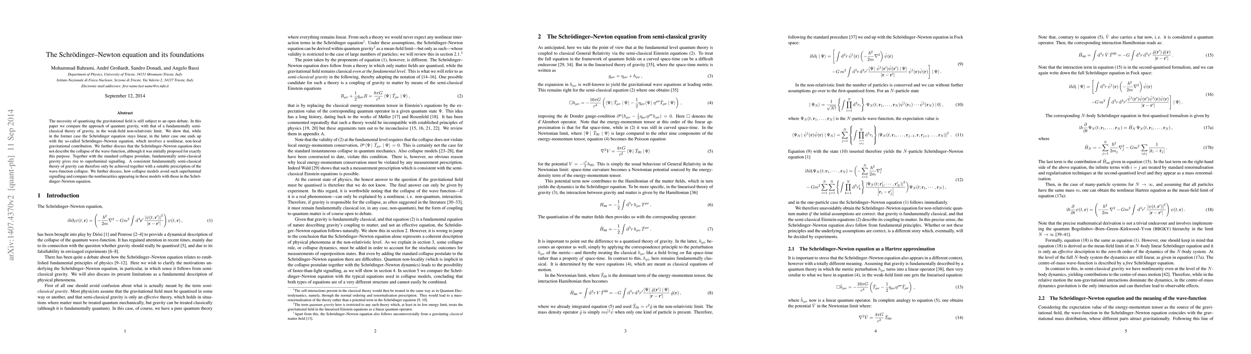The necessity of quantising the gravitational field is still subject to an open debate. In this paper we compare the approach of quantum gravity, with that of a fundamentally semi-classical theory of gravity, in the weak-field non-relativistic limit. We show that, while in the former case the Schr\"odinger equation stays linear, in the latter case one ends up with the so-called Schr\"odinger-Newton equation, which involves a nonlinear, non-local gravitational contribution. We further discuss that the Schr\"odinger-Newton equation does not describe the collapse of the wave-function, although it was initially proposed for exactly this purpose. Together with the standard collapse postulate, fundamentally semi-classical gravity gives rise to superluminal signalling. A consistent fundamentally semi-classical theory of gravity can therefore only be achieved together with a suitable prescription of the wave-function collapse. We further discuss, how collapse models avoid such superluminal signalling and compare the nonlinearities appearing in these models with those in the Schr\"odinger-Newton equation.
