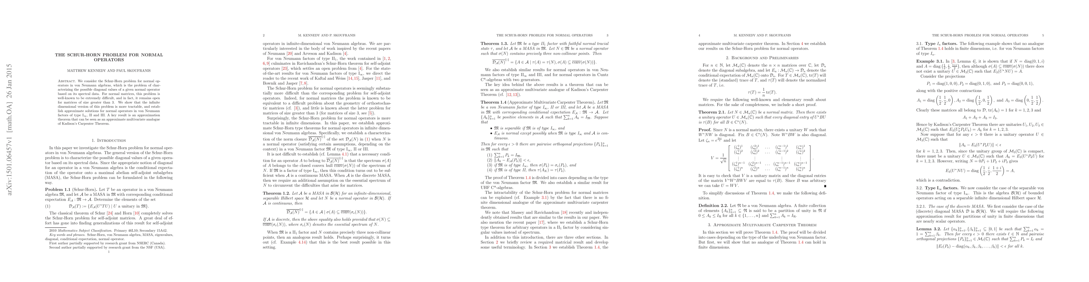 The Schur-Horn problem for normal operators in von Neumann algebras seeks to characterize possible diagonal values based on spectral data. While this problem remains unsolved for large finite matrices, the paper demonstrates more tractable solutions for infinite-dimensional normal operators, establishing approximate results for type I$_\infty$, II, and III von Neumann factors, and introduces an approximate multivariate analogue of Kadison's Carpenter Theorem.