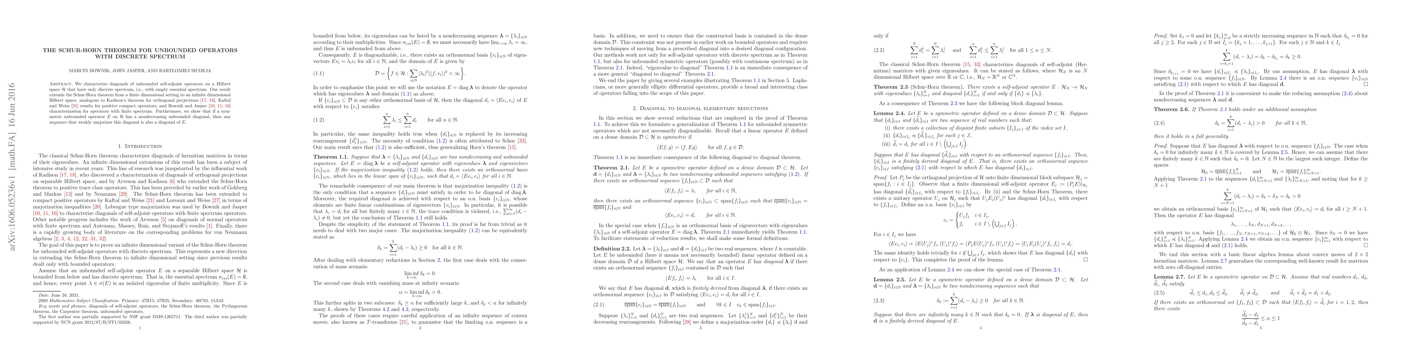 This paper extends the Schur-Horn theorem to characterize diagonals of unbounded self-adjoint operators on Hilbert spaces with discrete spectrum, demonstrating that any sequence weakly majorizing the operator's diagonal can also be a diagonal of the operator.