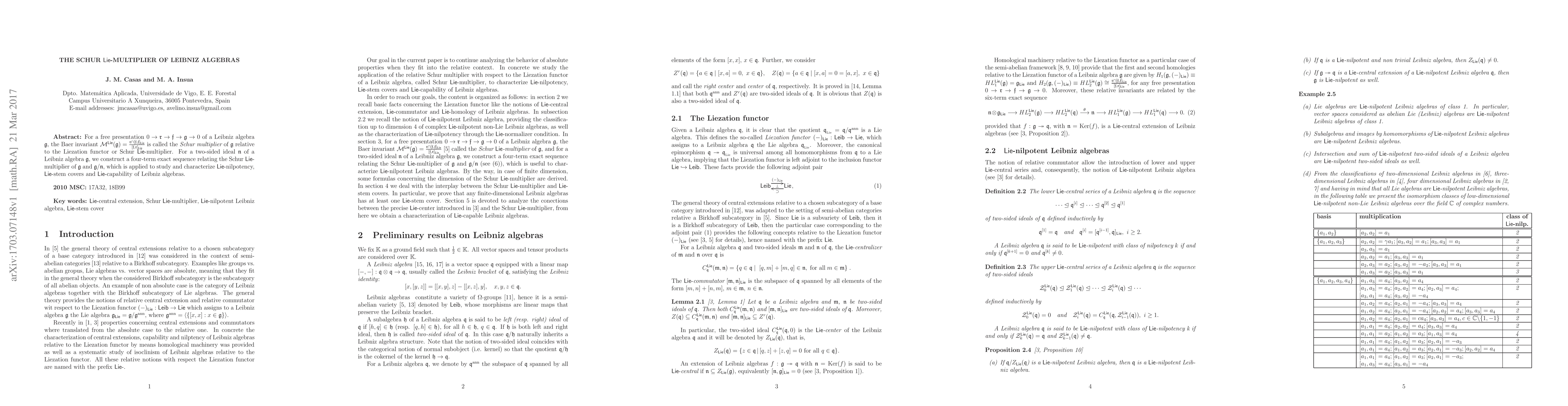 The paper introduces the concept of the Schur Lie-multiplier for Leibniz algebras, constructing a four-term exact sequence to analyze its relationship with quotients by ideals. This framework is utilized to explore Lie-nilpotency, Lie-stem covers, and Lie-capability in Leibniz algebras.