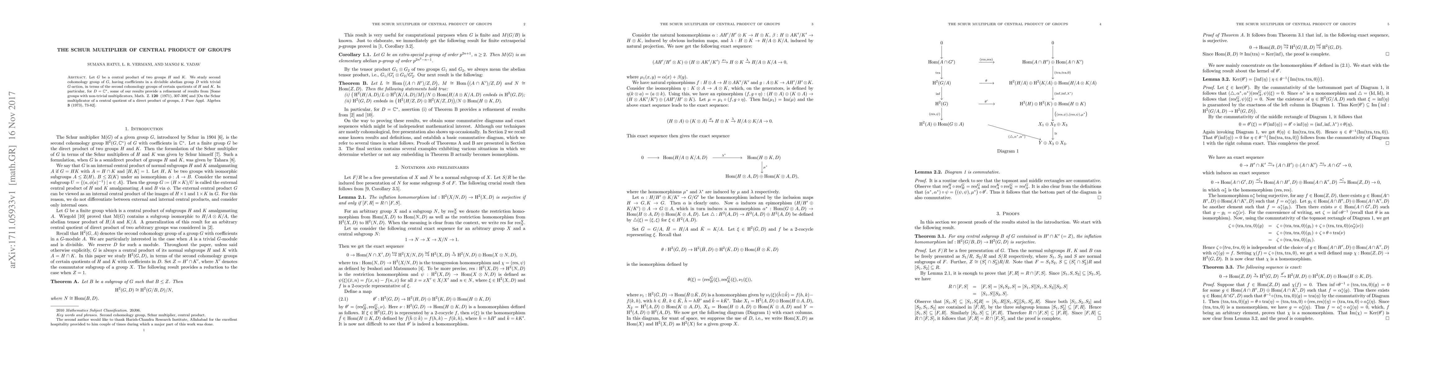 Let $G$ be a central product of two groups $H$ and $K$. We study second cohomology group of $G$, having coefficients in a divisible abelian group $D$ with trivial $G$-action, in terms of the second cohomology groups of certain quotients of $H$ and $K$. In particular, for $D = \mathbb{C}^{*}$, some of our results provide a refinement of results from [Some groups with non-trivial multiplicators, Math. Z. {\bf 120 } (1971), 307-308] and [On the Schur multiplicator of a central quotient of a direct product of groups, J. Pure Appl. Algebra {\bf 3} (1973), 73-82].