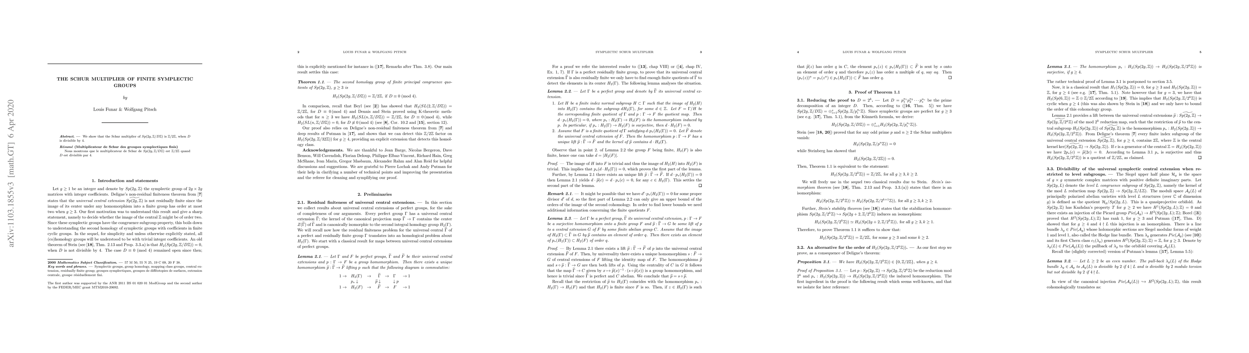 We show that the Schur multiplier of $Sp(2g,\mathbb Z/D\mathbb Z)$ is $\mathbb Z/2\mathbb Z$, when $D$ is divisible by 4.