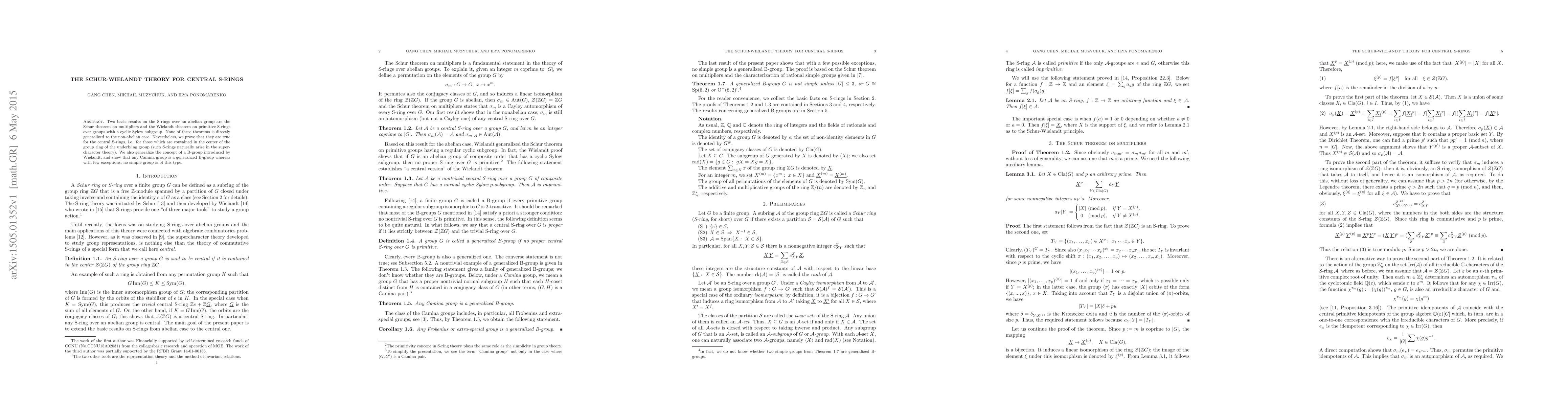 Two basic results on the S-rings over an abelian group are the Schur theorem on multipliers and the Wielandt theorem on primitive S-rings over groups with a cyclic Sylow subgroup. None of these theorems is directly generalized to the non-abelian case. Nevertheless, we prove that they are true for the central S-rings, i.e., for those which are contained in the center of the group ring of the underlying group (such S-rings naturally arise in the supercharacter theory). We also generalize the concept of a B-group introduced by Wielandt, and show that any Camina group is a generalized B-group whereas with few exceptions, no simple group is of this type.