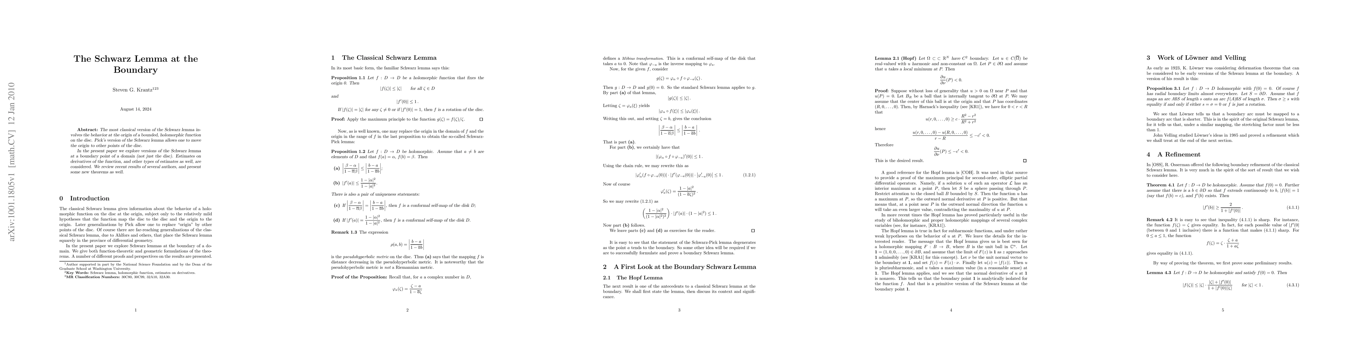 This paper extends the classical Schwarz lemma to boundary points of domains, providing derivative estimates and other bounds for holomorphic functions. It reviews recent developments and introduces new theorems.