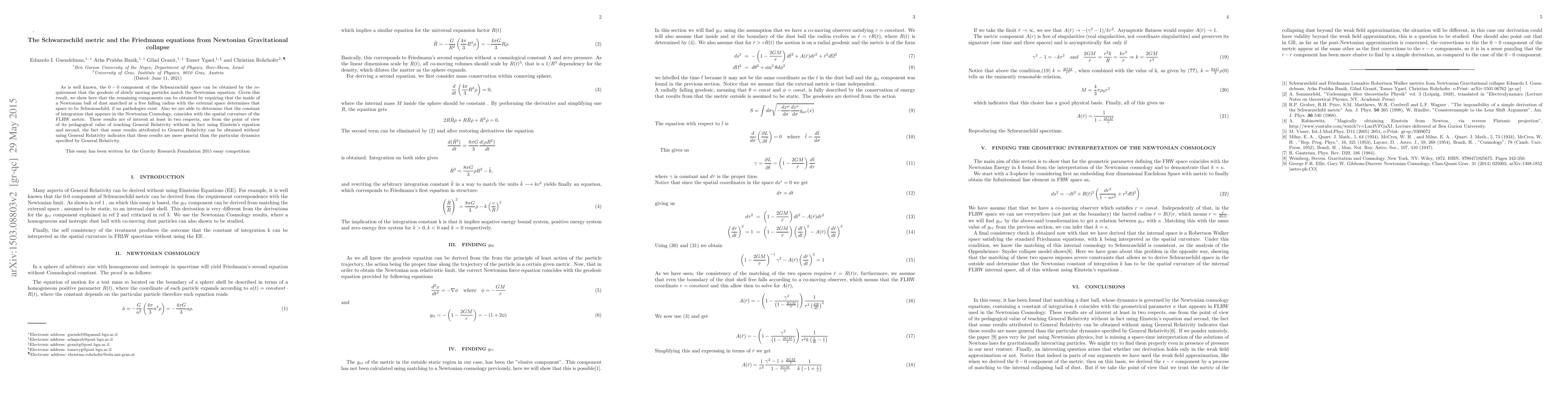 This paper demonstrates how the Schwarzschild metric and Friedmann equations can be derived from Newtonian gravitational collapse, showing that the internal dynamics of a Newtonian ball of dust can determine the external Schwarzschild space, and that the integration constant in Newtonian cosmology aligns with the spatial curvature of the FLRW metric. This approach highlights the pedagogical value of teaching General Relativity through Newtonian principles and suggests that some GR results are more general.