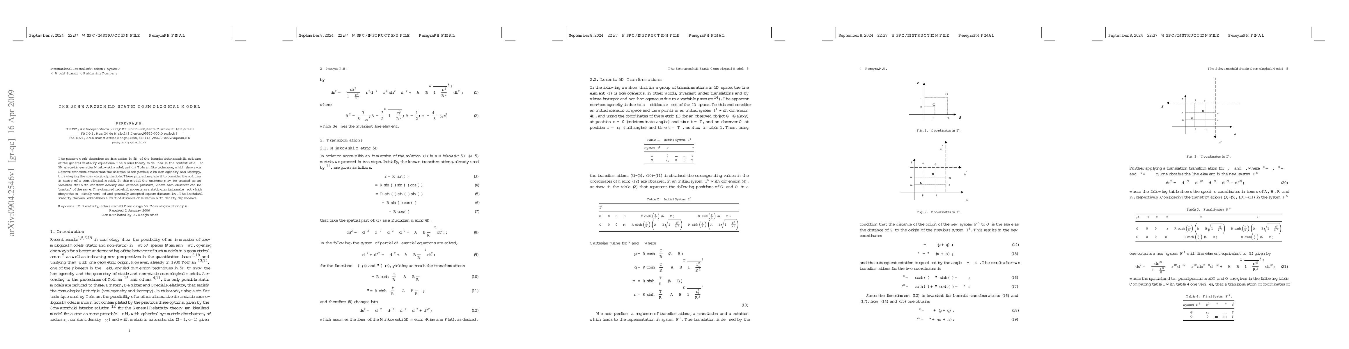 The present work describes an immersion in 5D of the interior Schwarzschild solution of the general relativity equations. The model theory is defined in the context of a flat 5D space time matter Minkowski model, using a Tolman like technique, which shows via Lorentz transformations that the solution is compatible with homogeneity and isotropy,thus obeying the cosmological principle. These properties permit one to consider the solution in terms of a cosmological model. In this model, the Universe may be treated as an idealized star with constant density and variable pressure, where each observer can be the center of the same. The observed redshift appears as a static gravitational effect which obeys the sufficiently verified and generally accepted square distance law. The Buchdahl stability theorem establishes a limit of distance observation with density dependence.