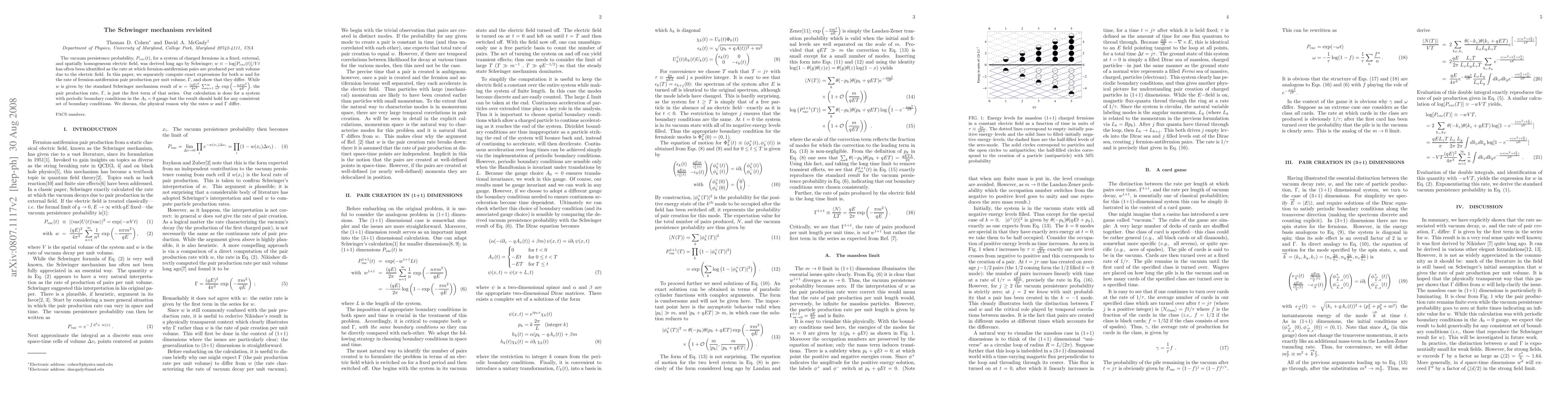 The vacuum persistence probability, $P_{vac}(t)$, for a system of charged fermions in a fixed, external, and spatially homogeneous electric field, was derived long ago by Schwinger; $w = -log[P_{vac}(t)]/ (V t)$ has often been identified as the rate at which fermion-antifermion pairs are produced per unit volume due to the electric field. In this paper, we separately compute exact expressions for both $w$ and for the rate of fermion-antifermion pair production per unit volume, $\Gamma$, and show that they differ. While $w$ is given by the standard Schwinger mechanism result $w$, an infinite series, the pair production rate, $\Gamma$, is just the first term of that series. Our calculation is done for a system with periodic boundary conditions in the $A_0=0$ gauge but the result should hold for any consistent set of boundary conditions. We discuss, the physical reason why the rates $w$ and $\Gamma$ differ.