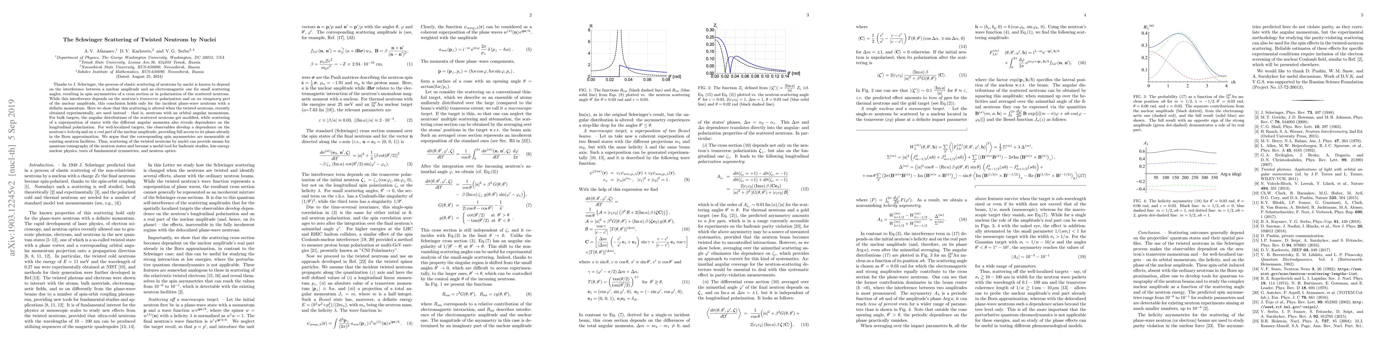 Thanks to J.~Schwinger, the process of elastic scattering of neutrons by nuclei is known to depend on the interference between a nuclear amplitude and an electromagnetic one for small scattering angles, resulting in spin asymmetries of a cross section or in polarization of the scattered neutrons. While this interference depends on the neutron's {\it transverse} polarization and on {\it an imaginary part} of the nuclear amplitude, this conclusion holds only for the incident plane-wave neutrons with a definite momentum. Here we show that this scattering is altered when the twisted neutrons, recently obtained experimentally, are used instead -- that is, neutrons with an orbital angular momentum. For bulk targets, the angular distributions of the scattered neutrons get modified, while scattering of a superposition of states with the different angular momenta also reveals dependence on the longitudinal polarization. For well-localized targets, the observables develop a dependence on the neutron's {\it helicity} and on {\it a real part} of the nuclear amplitude, providing full access to its phase already in the Born approximation. We argue that the corresponding spin asymmetries are measurable at existing neutron facilities. Thus, scattering of the twisted neutrons by nuclei can provide means for quantum tomography of the neutron states and become a useful tool for hadronic studies, low-energy nuclear physics, tests of fundamental symmetries, and neutron optics.