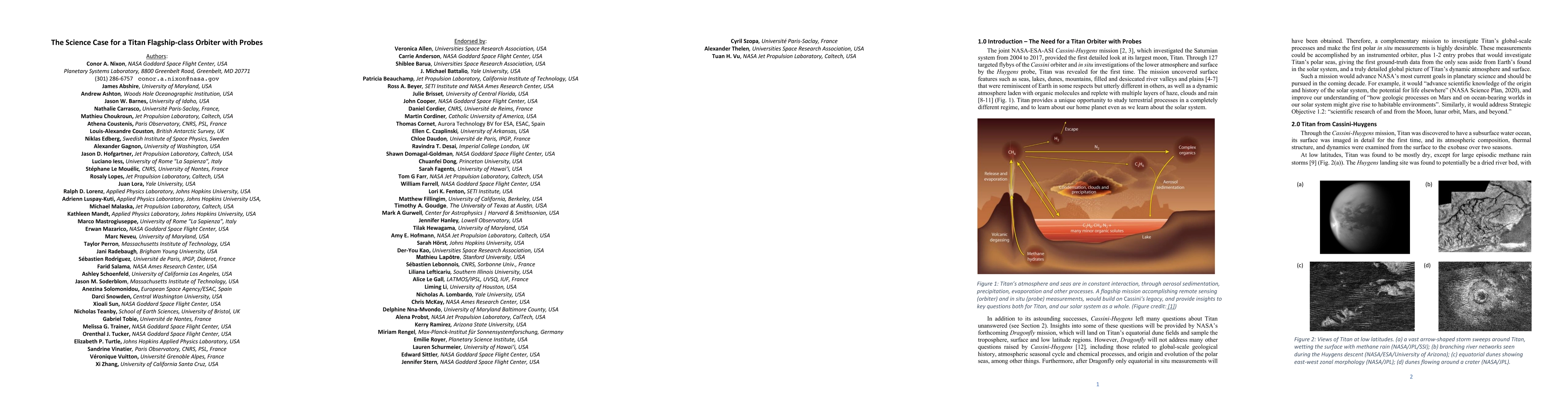 The paper presents a detailed mission concept for a Titan flagship-class orbiter with probes, including instrument suites for remote sensing and in situ measurements.