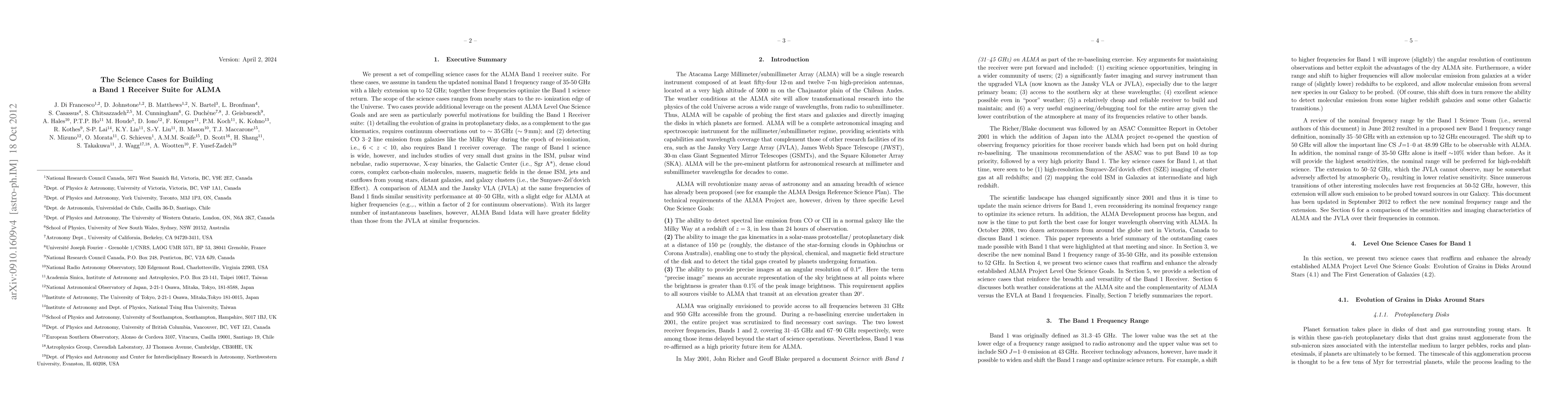 This paper presents compelling science cases for the ALMA Band 1 receiver suite, emphasizing its potential to optimize observations from nearby stars to the re-ionization edge of the Universe. Key motivations include studying the evolution of grains in protoplanetary disks and detecting CO line emissions from galaxies during the re-ionization epoch. ALMA's Band 1 data is expected to have greater fidelity compared to the JVLA, especially at higher frequencies.