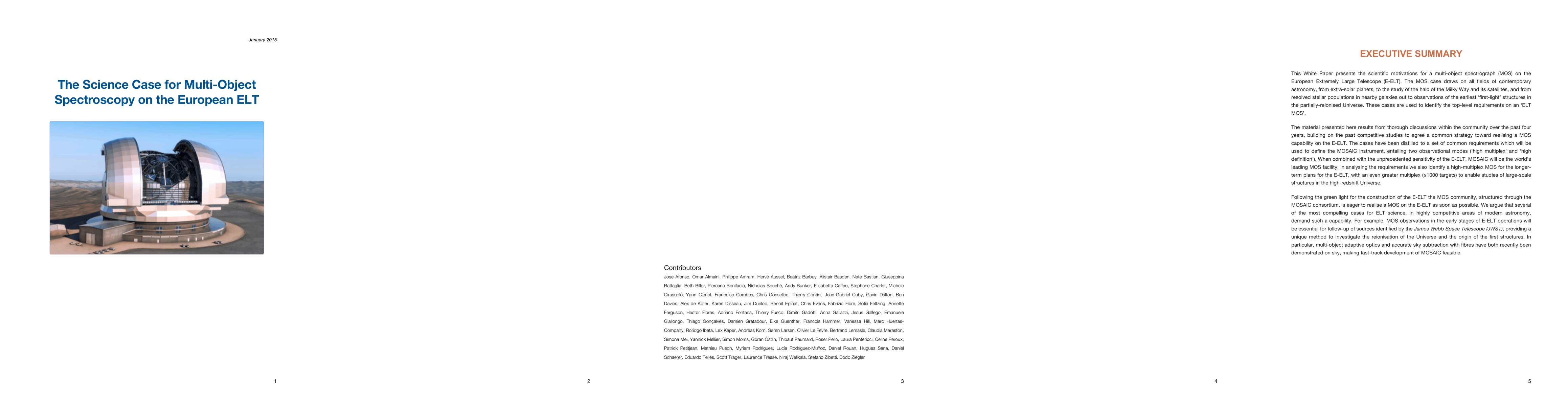 This White Paper presents the scientific motivations for a multi-object spectrograph (MOS) on the European Extremely Large Telescope (E-ELT). The MOS case draws on all fields of contemporary astronomy, from extra-solar planets, to the study of the halo of the Milky Way and its satellites, and from resolved stellar populations in nearby galaxies out to observations of the earliest 'first-light' structures in the partially-reionised Universe. The material presented here results from thorough discussions within the community over the past four years, building on the past competitive studies to agree a common strategy toward realising a MOS capability on the E-ELT. The cases have been distilled to a set of common requirements which will be used to define the MOSAIC instrument, entailing two observational modes ('high multiplex' and 'high definition'). When combined with the unprecedented sensitivity of the E-ELT, MOSAIC will be the world's leading MOS facility. In analysing the requirements we also identify a high-multiplex MOS for the longer-term plans for the E-ELT, with an even greater multiplex (>1000 targets) to enable studies of large-scale structures in the high-redshift Universe. Following the green light for the construction of the E-ELT the MOS community, structured through the MOSAIC consortium, is eager to realise a MOS on the E-ELT as soon as possible. We argue that several of the most compelling cases for ELT science, in highly competitive areas of modern astronomy, demand such a capability. For example, MOS observations in the early stages of E-ELT operations will be essential for follow-up of sources identified by the James Webb Space Telescope (JWST). In particular, multi-object adaptive optics and accurate sky subtraction with fibres have both recently been demonstrated on sky, making fast-track development of MOSAIC feasible.