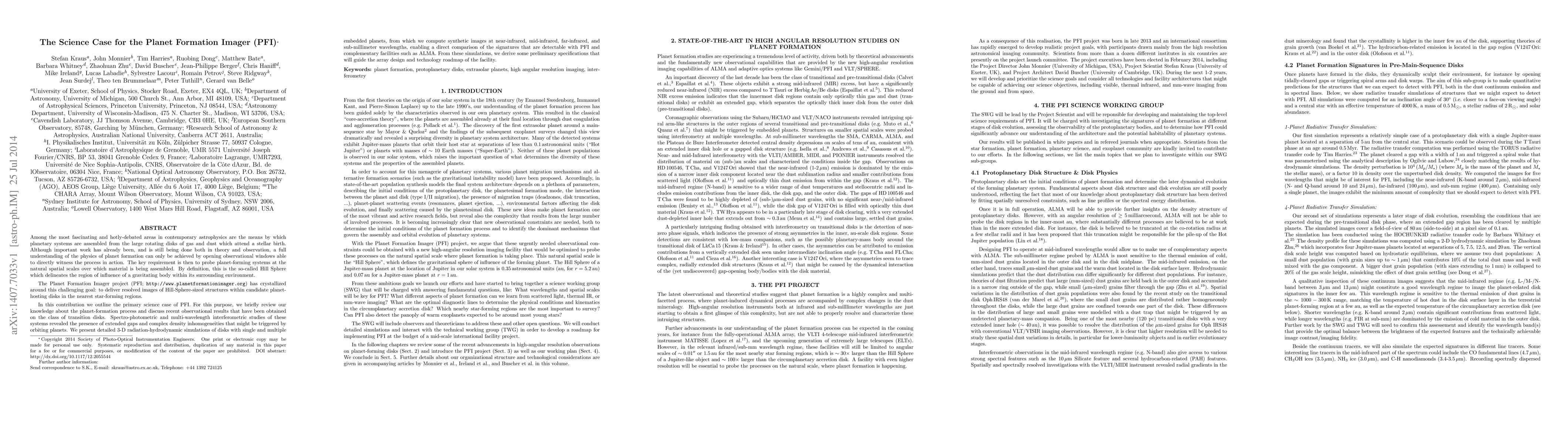 The Planet Formation Imager (PFI) aims to deliver resolved images of planet-forming regions within stellar disks, offering insights into the physical processes of planet formation. PFI will focus on capturing the Hill Sphere-sized structures in nearby star-forming regions, providing direct observational evidence of planet formation and complementing existing facilities like ALMA.