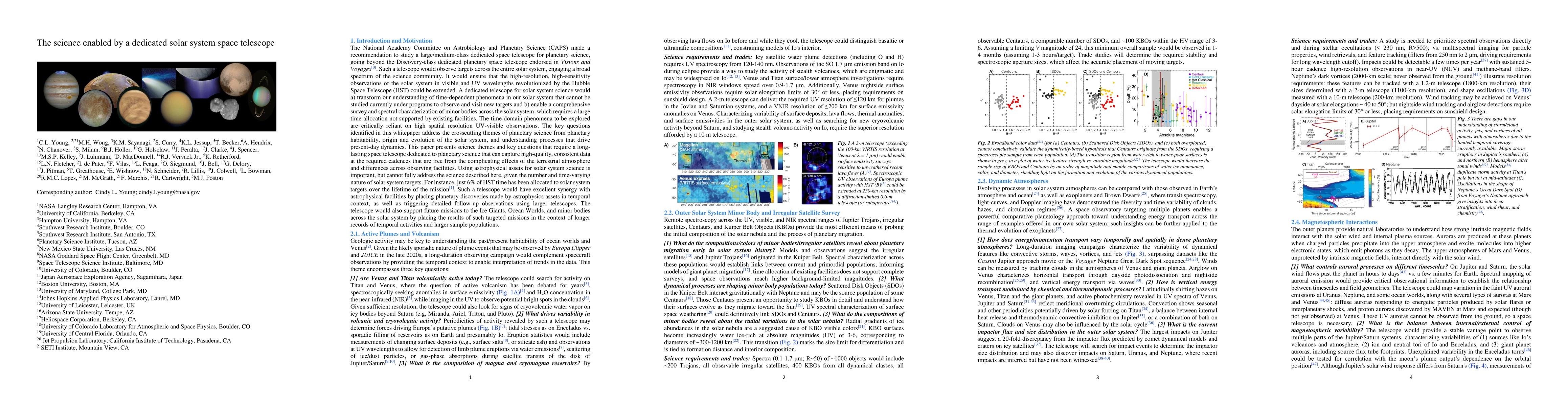 The National Academy Committee on Astrobiology and Planetary Science (CAPS) made a recommendation to study a large/medium-class dedicated space telescope for planetary science, going beyond the Discovery-class dedicated planetary space telescope endorsed in Visions and Voyages. Such a telescope would observe targets across the entire solar system, engaging a broad spectrum of the science community. It would ensure that the high-resolution, high-sensitivity observations of the solar system in visible and UV wavelengths revolutionized by the Hubble Space Telescope (HST) could be extended. A dedicated telescope for solar system science would: (a) transform our understanding of time-dependent phenomena in our solar system that cannot be studied currently under programs to observe and visit new targets and (b) enable a comprehensive survey and spectral characterization of minor bodies across the solar system, which requires a large time allocation not supported by existing facilities. The time-domain phenomena to be explored are critically reliant on high spatial resolution UV-visible observations. This paper presents science themes and key questions that require a long-lasting space telescope dedicated to planetary science that can capture high-quality, consistent data at the required cadences that are free from effects of the terrestrial atmosphere and differences across observing facilities. Such a telescope would have excellent synergy with astrophysical facilities by placing planetary discoveries made by astrophysics assets in temporal context, as well as triggering detailed follow-up observations using larger telescopes. The telescope would support future missions to the Ice Giants, Ocean Worlds, and minor bodies across the solar system by placing the results of such targeted missions in the context of longer records of temporal activities and larger sample populations.